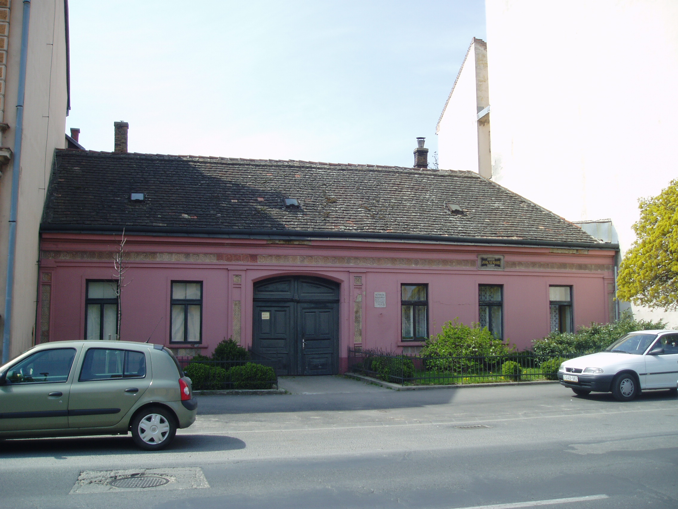 Nyilvános 858 | 1803 | Pápa, Jókai utca 13. | Klasszicista stílusban, 1820 körül épült egyemeletes lakóház. Homlokzatán emléktábla jelzi, hogy pápai diák korában, 1841/42-ben itt lakott Jókai Mór. Jókai - akkor még Jókay - Mórt sógora, Vály Ferenc hozta Pápára 1841. aug. 21-én különbözeti vizsgát tenni, ami után a fiú a Kollégium (lásd: Pápa, Petőfi u. 13.) diákja lett. Nov. 1-jén költözött be bebbe a házba, Klára Mihály otthonába, kosztosdiákként. (Még idős kori levelében is emlegette a "derék" Klára Mariska főztjét.) Együtt lakott Kerkapoly Károly későbbi filozófiaprofesszorrel és pénzügyminiszterrel és egy Pap Dénes nevű iskolatársával. Az itt töltött időben Jókai jeles előmenetelű diák volt. Tanulmányai mellett portréfestéssel is foglalkozott. Visszavonult, szolíd életet élt, amivel táraitól kiérdemelte a "Jámbor" becenevet. Ebben gyerekkori betegségének, tüdő-problémáinak is része volt. Lakótársain kívül elsősorban Orlai Petrich Somával barátkozott. Petőfivel 1842-ben ismerkedett meg. Eltérő egyéniségük ellenére hamar jóban lettek, sok időt töltött Petőfiék szállásán (lásd: Pápa, Petőfi u. 11.), de igazi barátság csak a későbbi kecskeméti években alakult ki közöttük. Bár még elsősorban festőművésznek készült, de novellákat is írt; az egyikkel második díjat nyert 1842-ben (lásd: Pápa, Fő u. 17.). Itt töltött időszaka, a diákélet szokásai, jeles professzorai nagy hatást gyakoroltak életművére. Különösen sok pápai motívum lelhető fel az És mégis mozog a föld és az Egetvívó asszonyszív című regényeiben. A házat még Jókai életében, 1880-ban jelölték meg emléktáblával (lásd: Pápa, Jókai u. 13. 3.kép). A fénykép 2007 áprilisában készült. Felh. irod.: Németh Adél - Szabó Lajos: Pápa. Bp. Panoráma, 1989 Petőfi emlékhelyek a Kérpát-medencében. Kiskőrös, 1996, Petőfi Sándor Társaság "A kényes úrfi s a rongyos baka". Tanulmányok két halhatatlan pápai diákról. Pápa, 2001, Pápai Református Gyűjtemények |