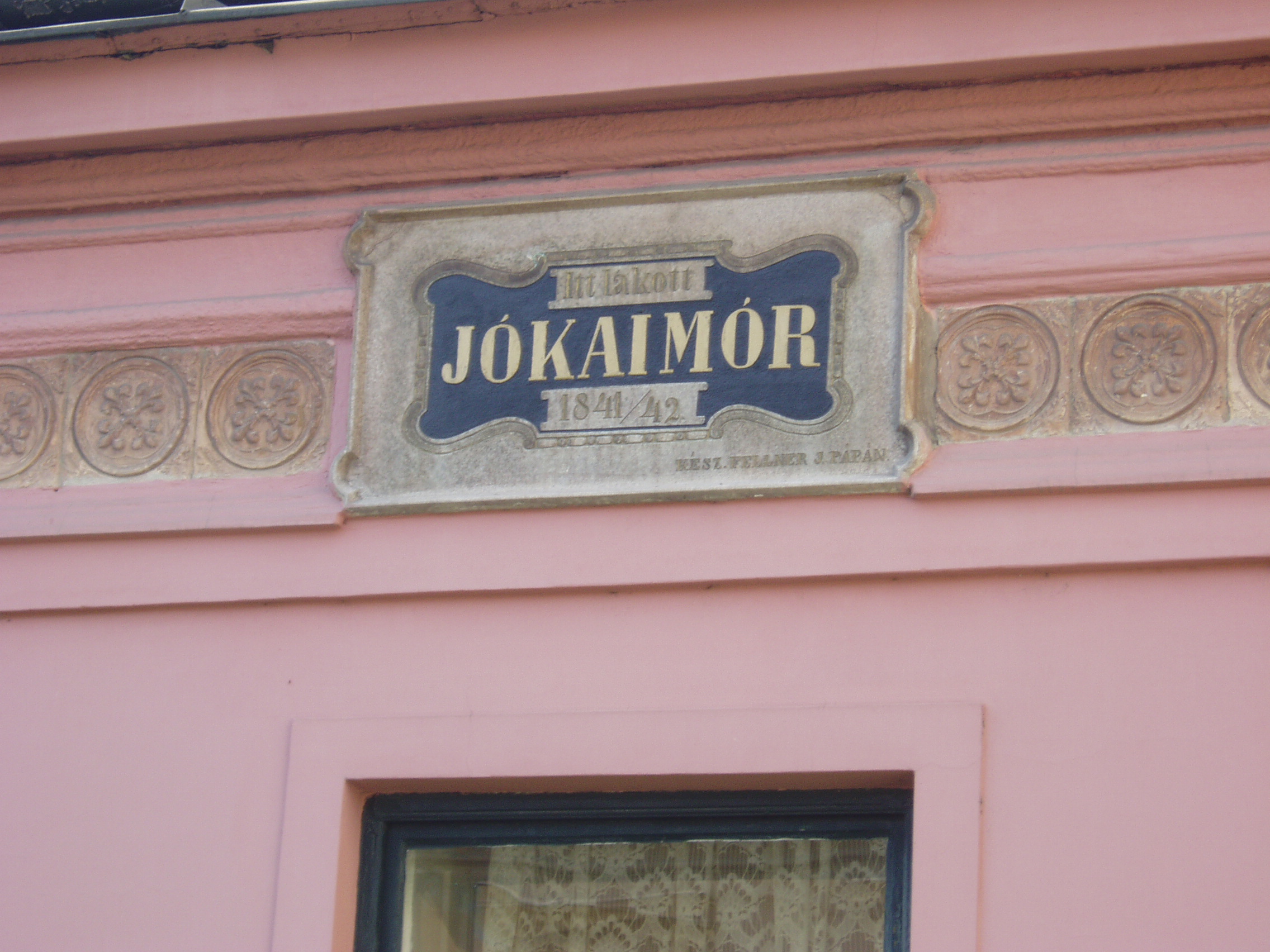Nyilvános 890 | 1714 | Pápa, Jókai utca 13. | Klasszicista stílusban, 1820 körül épült egyemeletes lakóház. Homlokzatán emléktábla jelzi, hogy pápai diák korában, 1841/42-ben itt lakott Jókai Mór. Jókai - akkor még Jókay - Mórt sógora, Vály Ferenc hozta Pápára 1841. aug. 21-én különbözeti vizsgát tenni, ami után a fiú a Kollégium (lásd: Pápa, Petőfi u. 13.) diákja lett. Nov. 1-jén költözött be bebbe a házba, Klára Mihály otthonába, kosztosdiákként. (Még idős kori levelében is emlegette a "derék" Klára Mariska főztjét.) Együtt lakott Kerkapoly Károly későbbi filozófiaprofesszorrel és pénzügyminiszterrel és egy Pap Dénes nevű iskolatársával. Az itt töltött időben Jókai jeles előmenetelű diák volt. Tanulmányai mellett portréfestéssel is foglalkozott. Visszavonult, szolíd életet élt, amivel táraitól kiérdemelte a "Jámbor" becenevet. Ebben gyerekkori betegségének, tüdő-problémáinak is része volt. Lakótársain kívül elsősorban Orlai Petrich Somával barátkozott. Petőfivel 1842-ben ismerkedett meg. Eltérő egyéniségük ellenére hamar jóban lettek, sok időt töltött Petőfiék szállásán (lásd: Pápa, Petőfi u. 11.), de igazi barátság csak a későbbi kecskeméti években alakult ki közöttük. Bár még elsősorban festőművésznek készült, de novellákat is írt; az egyikkel második díjat nyert 1842-ben (lásd: Pápa, Fő u. 17.). Itt töltött időszaka, a diákélet szokásai, jeles professzorai nagy hatást gyakoroltak életművére. Különösen sok pápai motívum lelhető fel az És mégis mozog a föld és az Egetvívó asszonyszív című regényeiben. A házat még Jókai életében, 1880-ban jelölték meg emléktáblával. A fénykép 2007 áprilisában készült. Felh. irod.: Németh Adél - Szabó Lajos: Pápa. Bp. Panoráma, 1989 Petőfi emlékhelyek a Kérpát-medencében. Kiskőrös, 1996, Petőfi Sándor Társaság "A kényes úrfi s a rongyos baka". Tanulmányok két halhatatlan pápai diákról. Pápa, 2001, Pápai Református Gyűjtemények |