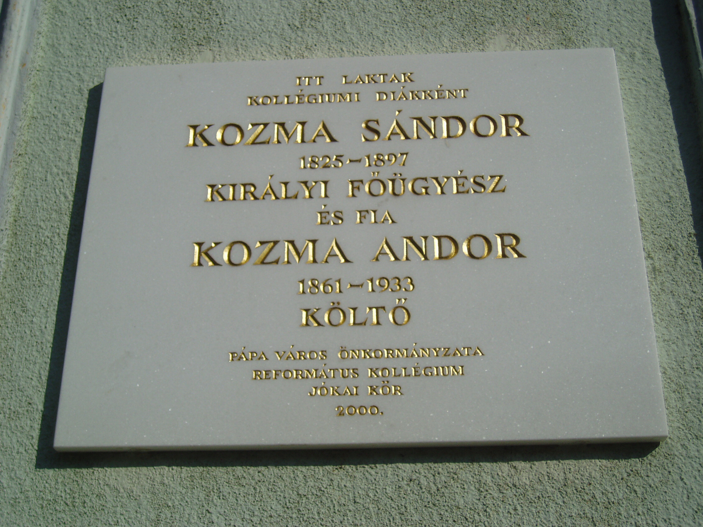 Nyilvános 910 | 1494 | Pápa, Széchenyi utca 10. | A városi lakóház többszörös kultúrtörténeti jelentőséggel bír. Itt, a ház utcafronti részében lakott Bocsor István (1807-1885), a pápai református kollégium (lásd: Pápa, Petőfi u. 13.) egyik nagy tanáregyénisége. Emléktábláját 1972-ben avatták fel (lásd: Pápa, Széchenyi u. 10. 2.kép). Egy másik emléktáblán Kozma Sándor (1825-1897), későbbi királyi főügyész (Bocsor ifjú sógora) és fia, Kozma Andor (1861-1933) költő neve olvasható. Mindketten itt laktak pápai diákéveik idején. Kozma Andor még verset is írt Bocsor Istvánról "Karthagói harangok" címmel (lásd: Pápa, Széchenyi u. 10. 2.kép). Apja, Kozma Sándor, aki Pápáról Leveldi néven színházi kritikákat írt a Regélőbe, Petőfi egyik jóbarátja volt közös pápai diákságuk idején. Akkor barátkoztak össze, amikor Petőfit, Kozmát és még három társukat a matematikaórák hanyagolása miatt egy egész napra a karcerba zárták. Itt, Petőfi vezérletével azzal mulatták az időt, hogy alkalmi színdarabot rögtönöztek Az öt jómadár címmel, melynek "színlapját" felvésték a karcer falára. Emléktábla még nem jelzi, de Petőfi Sándor is lakott a házban, itt volt negyedik pápai szállása 1843 tavaszán. Hat hétig időzött ekkor a városban; ekkor, áprilisban írta Barátimhoz c. versét: Nos, fiúk, nem szólt a szarka Házfödélteken? Vagy ki álmodá meg, hogy ma Vendégtek leszen? De mi a kő! mért e hosszu Méla bámulás? H'sz én vagyok, ha nem csalódom, Én és senki más. Vagy feledve már talán a Régi jóbarát? Nem hihetem, hogy reátok Illenék e vád. A szövetség, melynek szála Minket összefont, Áll, amíg csak vért bir a szív És velőt a csont. No de kissé meglepett tán Jöttöm úgyebár? Hja, öcséim, velem a sors Furcsa táncot jár. Köztem s közte folyton-folyva Tart a háború, S majd lenyom, majd, mint a pelyhet, Végtelenbe fú. De azért nem csüggedünk ám, Aki lelke van! Szembeszállok őkelmével Bátran, szilajan. S tán ha látja sors komám, hogy Csüggedés nem ért: Egykor annál bőkezűbben Nyujtja majd a bért... Eh, de mit most okoskodni! Csapjatok kezet; Jóbarát markába csapni Kedves élvezet. S mely bennünket ily váratlan Együvé hozott, Áldomással ünnepeljük A pompás napot! Petőfi ebből a házból indult május közepén, miután felkérést kapott Nagy Ignáctól egy francia regény fordítására, zuhogó esőben, gyalogosan Pozsonyba. Szobatársa, Puzdor Gyula elkísérte a Kálváriáig, ahol - Petőfi minden vonakodása ellenére - nyakába akasztotta gallérköpönyegét. Ez volt Petőfi utolsó pápai látogatása. A fénykép 2007 áprilisában készült. Felh. irod.: Petőfi emlékhelyek a Kárpát-medencében. Kiskőrös, 1996, Petőfi Sándor Társaság "A kényes úrfi s a rongyos baka". Tanulmányok két halhatatlan pápai diákról. Pápa, 2001, Pápai Református Gyűjtemények |