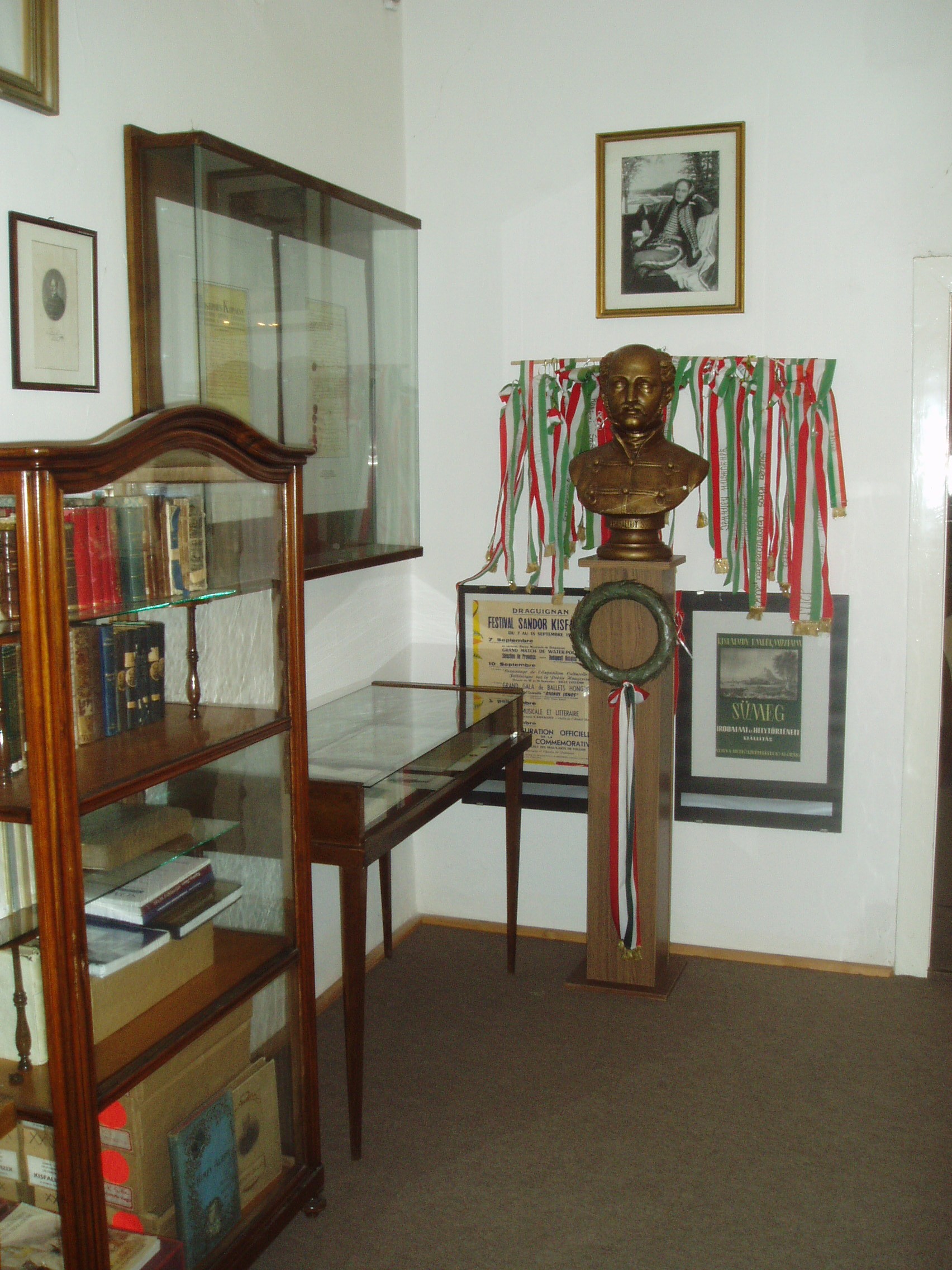 Nyilvános 828 | 1321 | Sümeg, Kisfaludy tér 2. | Ebben a házban, amely ma a Városi Múzeum otthona, született és halt meg Kisfaludy Sándor. A XVII. században épült ház eredetileg a Sándorffy család tulajdona volt, a Kisfaludyakra örökség útján maradt. A XIX. században klasszicizáló stílusban többször is átépítették a boltíves barokk kúriát, ittlakása idején Kisfaludy Sándor is bővíttette. A költő 1772. szept. 27-én látta meg itt a napvilágot. Hat éves volt, amikor a család Tétre költözött (Károly öccse ott született 1788-ban). 1805-ben, házasságkötése után néhány évvel költözött vissza a szülőházába, s haláláig itt volt az otthona. Miután 1832-ben elveszítette szeretett feleségét, Szegedi Rózát, az idős költő újra megnősült, azonban második felesége, Vajda Amália is hamarosan meghalt. A költő ebben a házban halt meg 1844. október 28-án. Sírja a sümegi temetőben van (lásd: Sümeg, Temető). A szülőház 1950 óta múzeum. Szobái közül kettő őrzi egykori híres lakója emlékét. Személyes és családi tárgyai, bútorai, könyvek, képek ismertetik meg a látogatóval a Himfy-versekkel és a balatoni várak romantikus regéit megörökítő műveivel a maga korában nagy népszerűségnek örvendő költő életét és korát. A fénykép 2007 júniusában készült. Felh. irod.: Koppány Tibor - Kozák Károly: Sümeg útikalauz. Veszprém, Idegenforgalmi Hivatal, 1965 Sümegi kalauz. Sümeg, Sümegi Fórum alapítvány, 1993 Kisfaludy Sándor. Veszprém, Veszprém Megyei Múzeumi Igazgatóság. /Pannon Panteon 1./ |