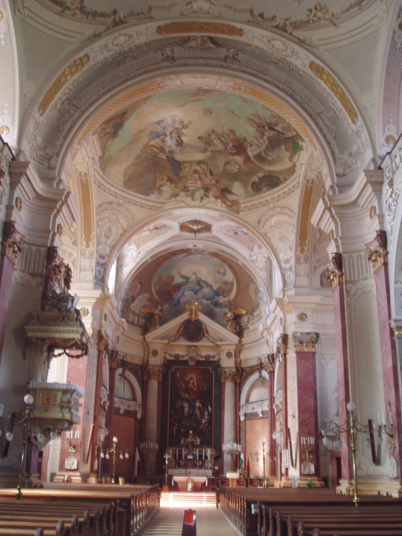 Nyilvános 881 | 1404 | Kecskemét, Kossuth tér 2. Öregtemplom | A késő barokk, copfstílusú templom a XVIII. század végén épült Oswald Gáspár tervei szerint. 1993 óta a Kalocsa-kecskeméti Főegyházmegye társszékesegyháza. Az "öreg" jelző az alföldi szóhasználatban nagyot, hatalmasat jelent. Az épület az Alföld legmagasabb építménye. A kapuzatból tör az ég felé a 35 méter magasságban erkéllyel övezett homlokzati torony. 45 tonna súlyú harangja 1819-ben készült, és hangja valamikor egészen Bugacig elhallatszott. A templom nemcsak méretei, hanem művészi értékei miatt is jelentős. Az európai stílusjegyek mellett külön kecskeméti jellegzetességekkel is rendelkezik, mint például a templombelső oszlopain felfutó szőlőfürtök, búzakévék, vagy a szószék talapzatán látható aranyozott gyümölcs–csokor. A fénykép 2006 augusztusában készült. Felh. irod.: Heltai Nándor: Kecskemét. Kecskeméti Lapok, 1998 |