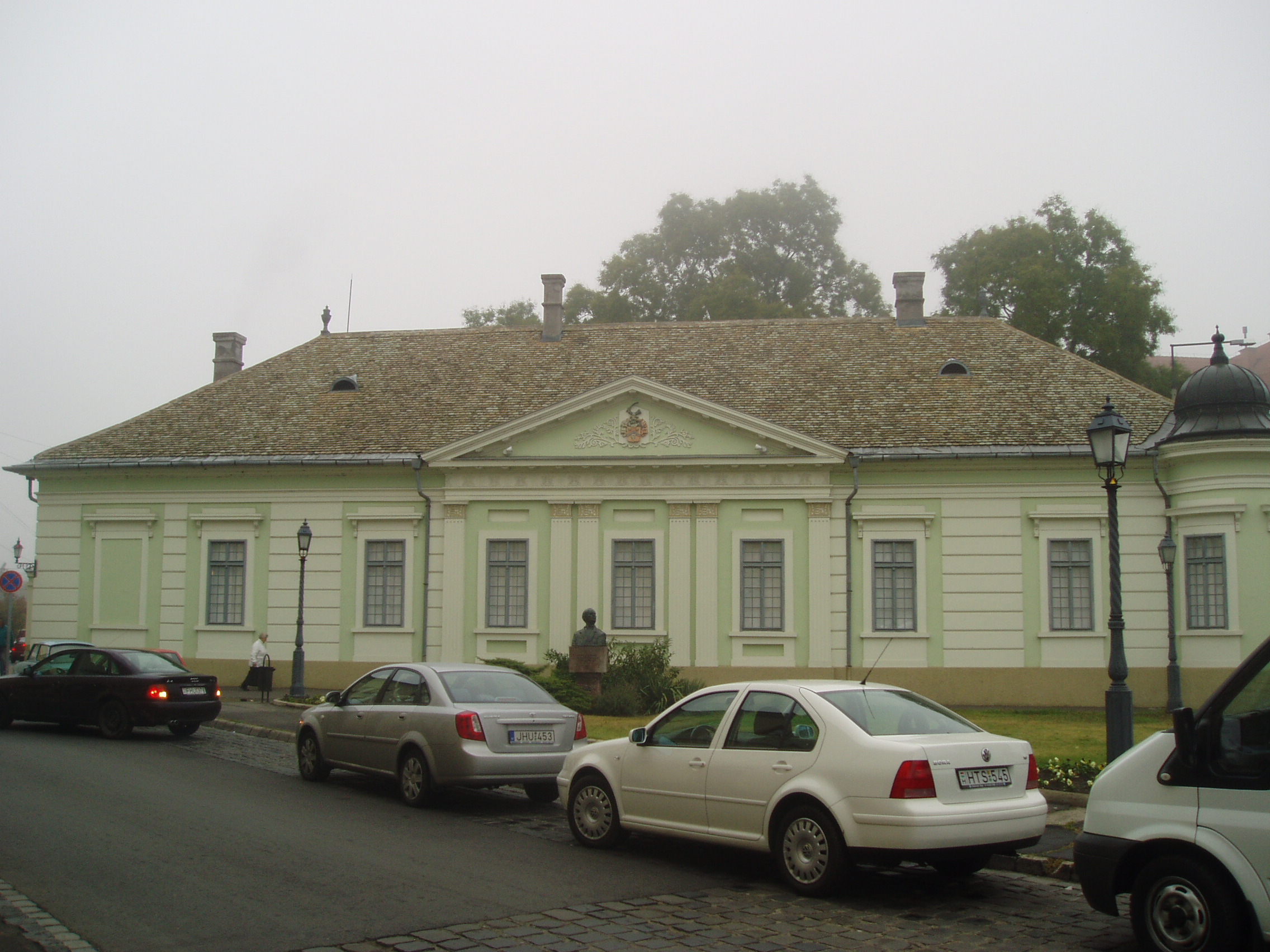 Nyilvános 1140 | 2955 | Baja, Arany János utca 1. | Az egykori Vojnich-kúria 1820 körül épült klasszicista stílusban. 1946 és 1953 között ez az épület adott otthont a Rudnay Gyulának és az általa vezetett művésztelepnek. A kúria ma a Nagy István Baján élt (lásd: Baja, Nagy István u. 8.) festőről elnevezett képtár otthona. A XX. századi modern magyar képzőművészet reprezentánsait bemutató gyűjteményben külön egységet képeznek az ő alkotásai. A kiállítás másik nagy gyűjteménye Rudnay Gyula festőművész munkásságát, bajai iskolateremtő tevékenységét mutatja be. Itt látható az Oltványi Imre műgyűjtő által a múzeumnak adományozott modern képzőművészeti anyag is. A fénykép 2007 októberében készült. Felh. irod.: Látnivalók Bács-Kiskun megyében. Miskolc, Well-PRess, 2002 |