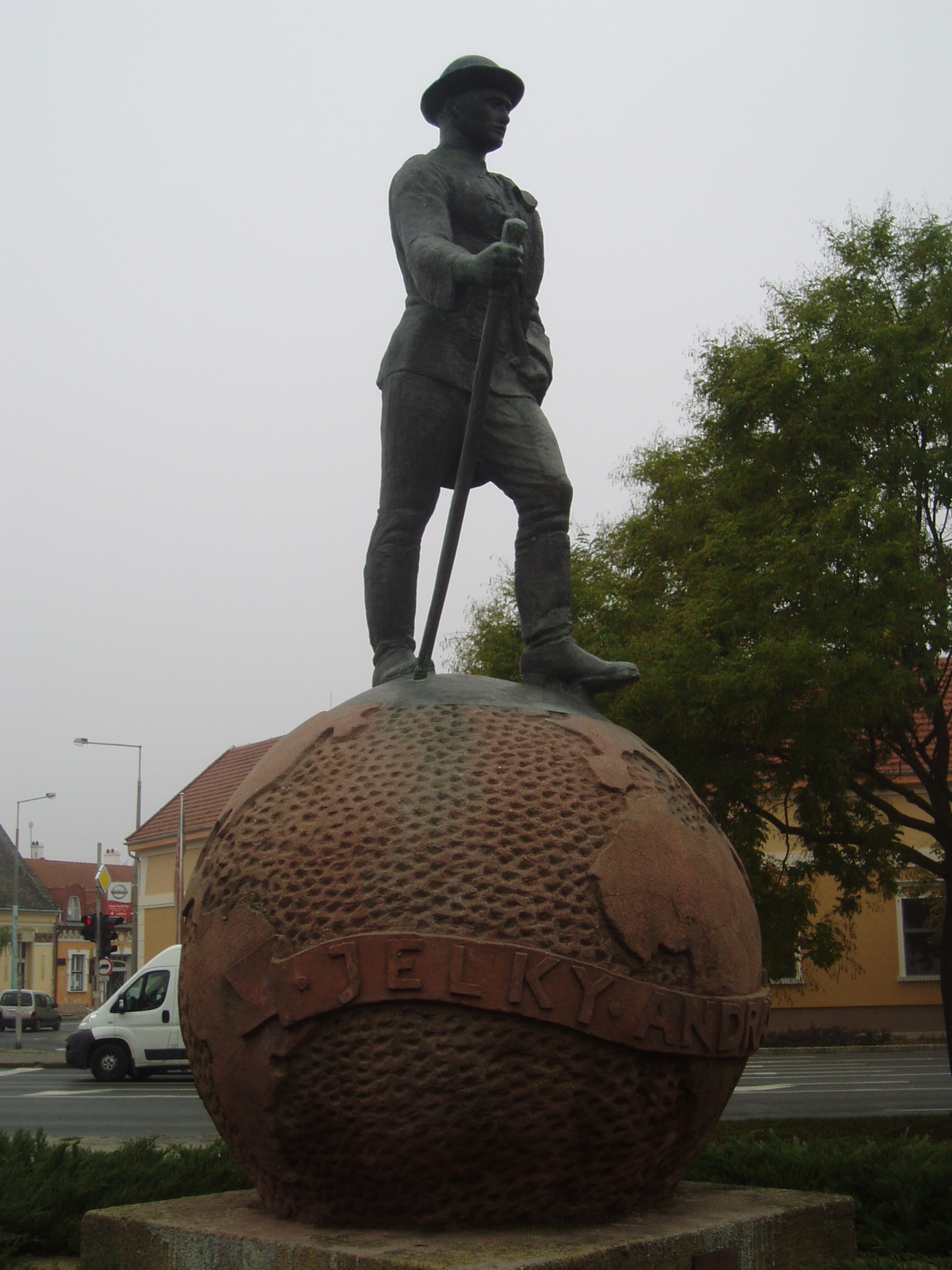 Nyilvános 872 | 1651 | Baja, Jelky András tér: Jelky András szobra | A város egyik kedves jelképe a bajai születésű, szabólegényből lett világutazó Jelky András földgömbön álló, vándorbotos szoboralakja. A bronzszobor Medgyessy Ferenc, a vasbeton földgömb Miskolczy Ferenc alkotása. Jelky András a Bajai Belvárosi Plébánia anyakönyvi bejegyzése szerint 1738. április 20-án született. Édesapja kiszolgált császári katona volt, aki Baján szabóként dolgozott. Fiát – hasonlóképp annak bátyjához, aki a bécsi császári ruhatárnál szabóskodott – szintén szabónak szánta. 1754. március 13-án kelt vándorútra. Európai kalandozásai közben Nimvegenben erőszakkal besorozták katonának és 1755. október 30-án elindult vele a hajó Holland-Kelet-India felé. Ekkor kezdődtek igazi kalandjai, melyek során megjárta Makaót, Batáviát, Ceylont - ez utóbbi helyen kis híján megették a kannibálok. Sok viszontagság után "haza"került Batáviába, ahol korábban megnősült. Komoly vagyont szerzett, és 1767-ben egy 1400 házból álló ültetvényt vett. 1770-ben a polgári őrség kapitányává nevezték ki, a holland követség titkos tanácsosaként többször járt követségben Japánban és Jáván. Felesége halála utánbús lemondott az állásáról, és 1776. október 25-én Európába utazott. 1777. október 2-án Bécsbe, ahol bátyját még életben találta. Bécsben nagy feltűnést keltett érkezésével, bemutatták Mária Teréziának is. 1778-ban Budán telepedett le. Ismét megnősült, s egy fia született. 53 éves korában tüdővészben hunyt el. Életútját Solymos Ede, a bajai múzeum igazgatója kutatta ki, regényt Hevesi Lajos írt róla. A fénykép 2007 októberében készült. Felh. irod.: Látnivalók Bács-Kiskun megyében. Miskolc, Well-PRess, 2002 Gál Zoltán: Jelky András, a világjáró bajai szabólegény. = Baja Story 2007. nov. 29. |
