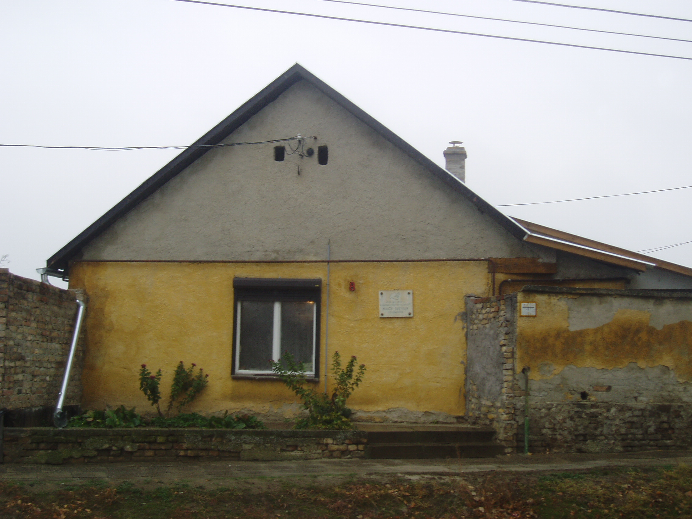 Nyilvános 839 | 1366 | Baja, Nagy István utca 8. | Mint a homlokzatán elhelyezett emléktáblán is olvasható, ebben a kis házban töltötte életének utolsó évtizedét Nagy István (1873-1937) festőművész, akit már a kortársak is „a székelyek Rembrandtjá”-nak, „a magyar Van Gogh”-nak neveztek. A Csík megyéből származó művész egy alföldi kistelepülésen tanítóként működött, amikor egy iskolai kiállítás alkalmával felfedezték tehetségét. Így került a Mintarajztanodába, Székely Bertalan mellé, majd 1899-ben Münchenbe, ahol több akadémiai díjat nyert. Ösztöndíjjal jutott ki 1900-ban a párizsi Julian Akadémiára és 1902-ben Olaszországba. Visszatérve szülőföldjén, az erdélyi Csík megyében telepedett le és kezdett dolgozni a Gyilkos-tó környékén. Részt vett az első világháborúban, s noha hivatalosan nem volt hadifestő, a fronton számos rajzot készített, főként katonaportrékat. A háború után rövid ideig Erdélyben élt, majd Budapestre költözött, de megfordult Szentes környékén, Koszta József mellett is. Nagyszabású gyűjteményes kiállítása 1923-ban általános elismerést vált ki. Többek között Kosztolányi Dezső és Lyka Károly írtak alkotásairól lelkesedéssel, Surányi Miklós pedig regényt írt róla. A húszas évek második felében ismét Erdélyben dolgozott és itt is állított ki, bejárta Magyarországot, volt Jugoszláviában, míg betegsége végleges letelepedésre kényszerítette. Feleségével és fiával ekkor telepedett le Baján. Itt hunyt el 1937-ben, sírja abban a temetőben (lásd: Baja, Kálvária temető) van, amelyre naponta rálátott ablakából. Több mint 4000 művét tartják számon. Legtöbb műve a róla elnevezett bajai képtárban (lásd: Baja, Arany J. u. 1.) található. A fénykép 2007 októberében készült. Felh. irod.: Solymár István: Nagy István. Bp. Képzőművészeti Alap, 1977 Pap Gábor: Nagy István. Bp. Corvina, 1965 www.baja.hu |