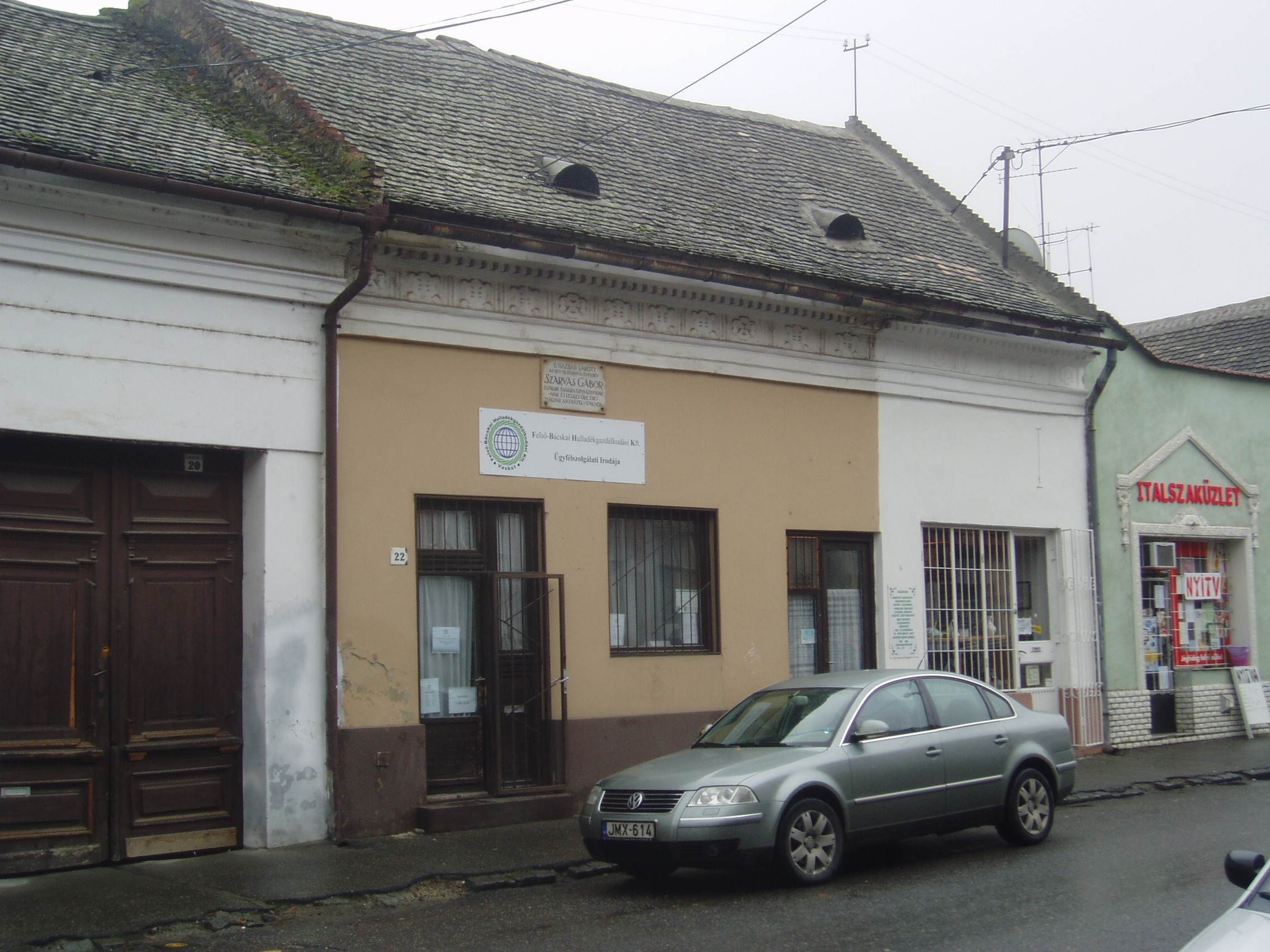 Nyilvános 858 | 1449 | Baja, Szabadság út 22. | A homlokzaton elhelyezett emléktábla tanúsága szerint ebben a kis házban lakott Szarvas Gábor nyelvész (1832-1895) 1857-1858-ban, majd 1860-1861-ben, amikor a bajai gimnázium (lásd: Baja, Szent Imre tér 5.) tanára volt. A magyar nyelvművelés megteremtője Egerben, Baján, Pozsonyban, majd Pesten működött tanárként. Országos hírnévre nyelvészeti munkásságával tett szert. A Magyar Tudományos Akadémia megbízásából ő indította be 1872-ben a Magyar Nyelvőr című, máig létező folyóiratot. Nyelvészként állást foglalt az erőszakos nyelvújítás és az idegenszerű fordulatok ellen. Kutatásai során tisztázta a nyelvújítás határait. Eredményes munkássága elismeréséül a Magyar Tudományos Akadémia levelező, majd rendes tagjává választották. A fénykép 2007 októberében készült. Felh. irod.: Bálint László: A bajai III. Béla Gimnázium. Bp. 1989, Tankönyvkiadó. /Iskolák a múltból./ Magyar életrajzi lexikon |