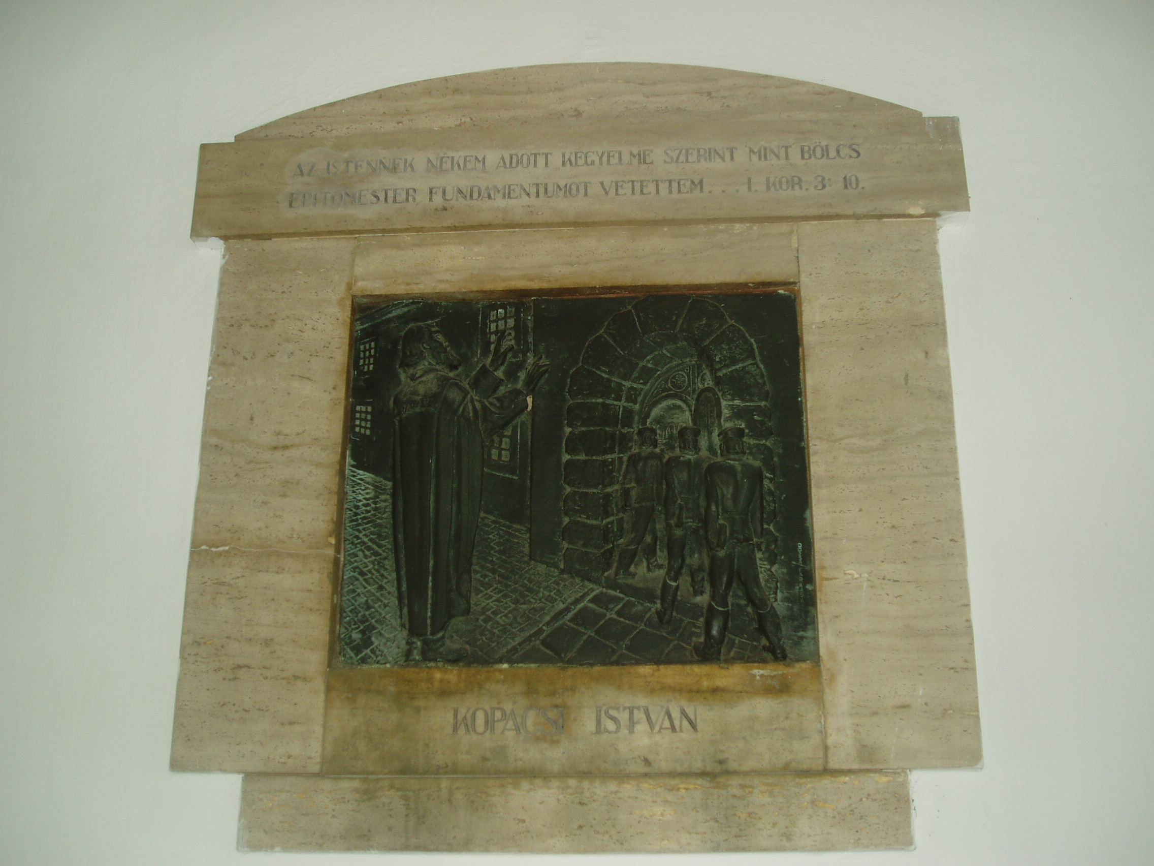 Nyilvános 804 | 1248 | Sárospatak, Rákóczi utca 1. Református Kollégium | A kollégium főépülete, a Nagy Kollégium a Rákóczi út északi végén található, mely 1804–1814 között korai klasszicista stílusban épült. Szép ráccsal ellátott, háromíves nyílású kapuzat vezet be az un. „nagyportá”-ba, amelyet két sor vaskos pillér három hajóra oszt. Kétoldalt a falakon az iskolatörténet néhány fontosabb eseményének, illetve a kollégium nagy alakjainak bronz domborművű ábrázolásait helyezték el. A képen Kopácsi István domborműve látható. Kopácsi István ferences rendi szerzetes volt, őt állította az 1531-ben alapított református iskola élére Perényi Péter, Patak földesura. Az 1937-ben felavatott dombormű alkotója Dózsa Farkas András. A fénykép 2007 augusztusában készült. Felh. irod.: Détsy Mihály: Sárospatak. Bp. Corvina, 1974 Látnivalók Borsod-Abaúj-Zemplén megyében. Miskolc, Well-PRess, 1995 www.sarospatak.hu/nevezetessegek |