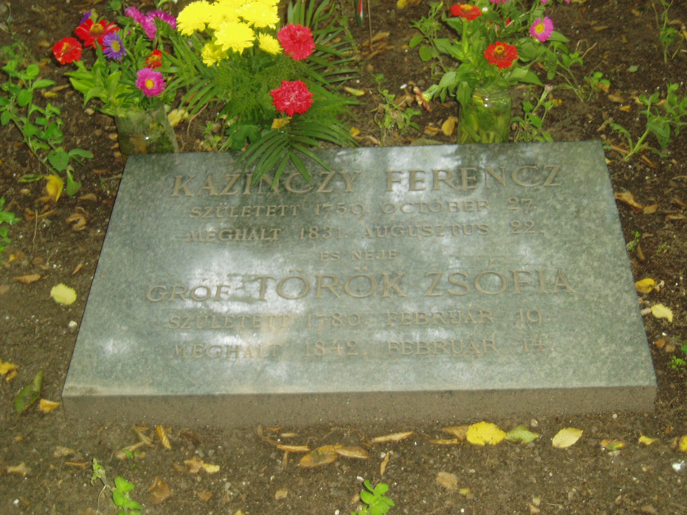 Nyilvános 835 | 1325 | Széphalom: A Kazinczy család sírkertje - Török Sophie sírja | A Kazinczy Emlékcsarnok parkja - Kazinczy Ferenc egykori kúriájának kertje - ma természetvédelmi terület. A mauzóleumból fasor vezet a Kazinczy család sírkertjébe. A kis temető helyét 1806-ban, első gyermeke, az egyéves korában elhunyt Iphigenia halálakor Kazinczy maga jelölte ki. Már akkor megírta barátainak, hogy felesége és ő is oda fognak temetkezni. Az 1831 augusztusában elhunyt Kazinczyt felesége, Török Sophie valamivel több, mint egy évtizeddel élte túl: ő 1842. február 14-én halt meg. Török Sophie, azaz gróf Török Zsófia és Kazinczy 1804 novemberében kötöttek házasságot. Nyolc gyermekük született, közülük négy nyugszik szülei sírja körül. Legkisebbik fiuk, Lajos, Aradon szenvedett vértanúhalált a honvédsereg ezredeseként. A fénykép 2007 augusztusában készült. Felh. irod.: Látnivalók Borsod-Abaúj-Zemplén megyében. Miskolc, Well-PRess, 2004 www.vendegvaro.hu Busa Margit: Adalékok a Kazinczy család történetéhez. = Széphalom. A Kazinczy Ferenc Társaság Évkönyve 12. kötet, 2002 |