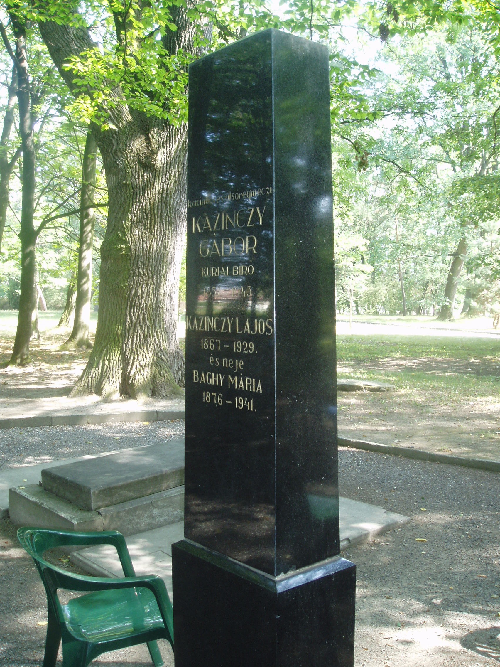 Nyilvános 814 | 1364 | Széphalom: A Kazinczy család sírkertje | A Kazinczy Emlékcsarnok parkja - Kazinczy Ferenc egykori kúriájának kertje - ma természetvédelmi terület. A mauzóleumból fasor vezet a Kazinczy család sírkertjébe. A kis temető helyét 1806-ban, első gyermeke, az egyéves korában elhunyt Iphigenia halálakor Kazinczy maga jelölte ki. Már akkor megírta barátainak, hogy felesége és ő is oda fognak temetkezni. Kazinczy és felesége sírja körül négy gyermekük, két unokájuk, három dédunokájuk és más rokonuk nyugszik. A képen Kazinczy Gábor kúriai bíró (1857-1943), Kazinczy Ferenc unokája (Bálint nevű fiának fia) és Kazinczy Lajos (1856-1929), az író dédunokája és felesége sírja látható. A fénykép 2007 augusztusában készült. Felh. irod.: Látnivalók Borsod-Abaúj-Zemplén megyében. Miskolc, Well-PRess, 2004 www.vendegvaro.hu Busa Margit: Adalékok a Kazinczy család történetéhez. = Széphalom. A Kazinczy Ferenc Társaság Évkönyve 12. kötet, 2002 |