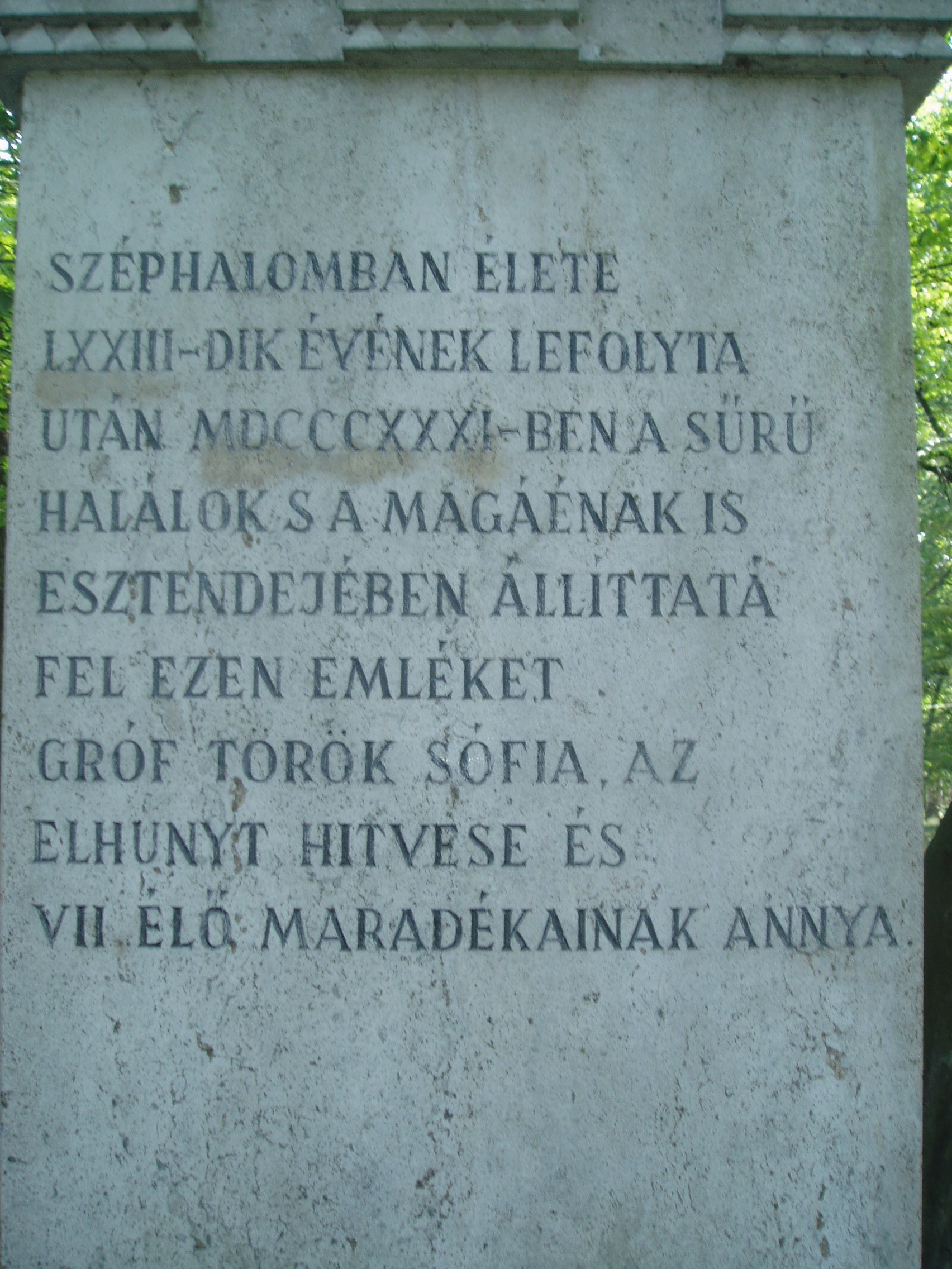 Nyilvános 809 | 1363 | Széphalom: A Kazinczy család sírkertje - Kazinczy Ferenc sírja | A Kazinczy Emlékcsarnok parkja - Kazinczy Ferenc egykori kúriájának kertje - ma természetvédelmi terület. A mauzóleumból fasor vezet a Kazinczy család sírkertjébe. A sírkert helyét 1806-ban, első gyermeke, az egyéves korában elhunyt Iphigenia halálakor Kazinczy maga jelölte ki. Már akkor megírta barátainak, hogy felesége és ő is oda fognak temetkezni. Kazinczy Ferenc 1831. augusztus 22-én hunyt el széphalmi otthonában. Sírja már a reformkorban zarándokhely lett. Járt itt Petőfi Sándor is 1847. júliusában. Az emlékoszlop alatt nyugszik az író és felesége, az oszlop körül pedig négy gyermekük, két unokájuk, három dédunokájuk és az a szolgálójuk, aki Kazinczyval együtt raboskodott Munkács várában. Legkisebbik fiuk, Lajos, Aradon szenvedett vértanúhalált a honvédsereg ezredeseként. A fénykép 2007 augusztusában készült. Felh. irod.: Látnivalók Borsod-Abaúj-Zemplén megyében. Miskolc, Well-PRess, 2004 www.vendegvaro.hu Busa Margit: Adalékok a Kazinczy család történetéhez. = Széphalom. A Kazinczy Ferenc Társaság Évkönyve 12. kötet, 2002 |