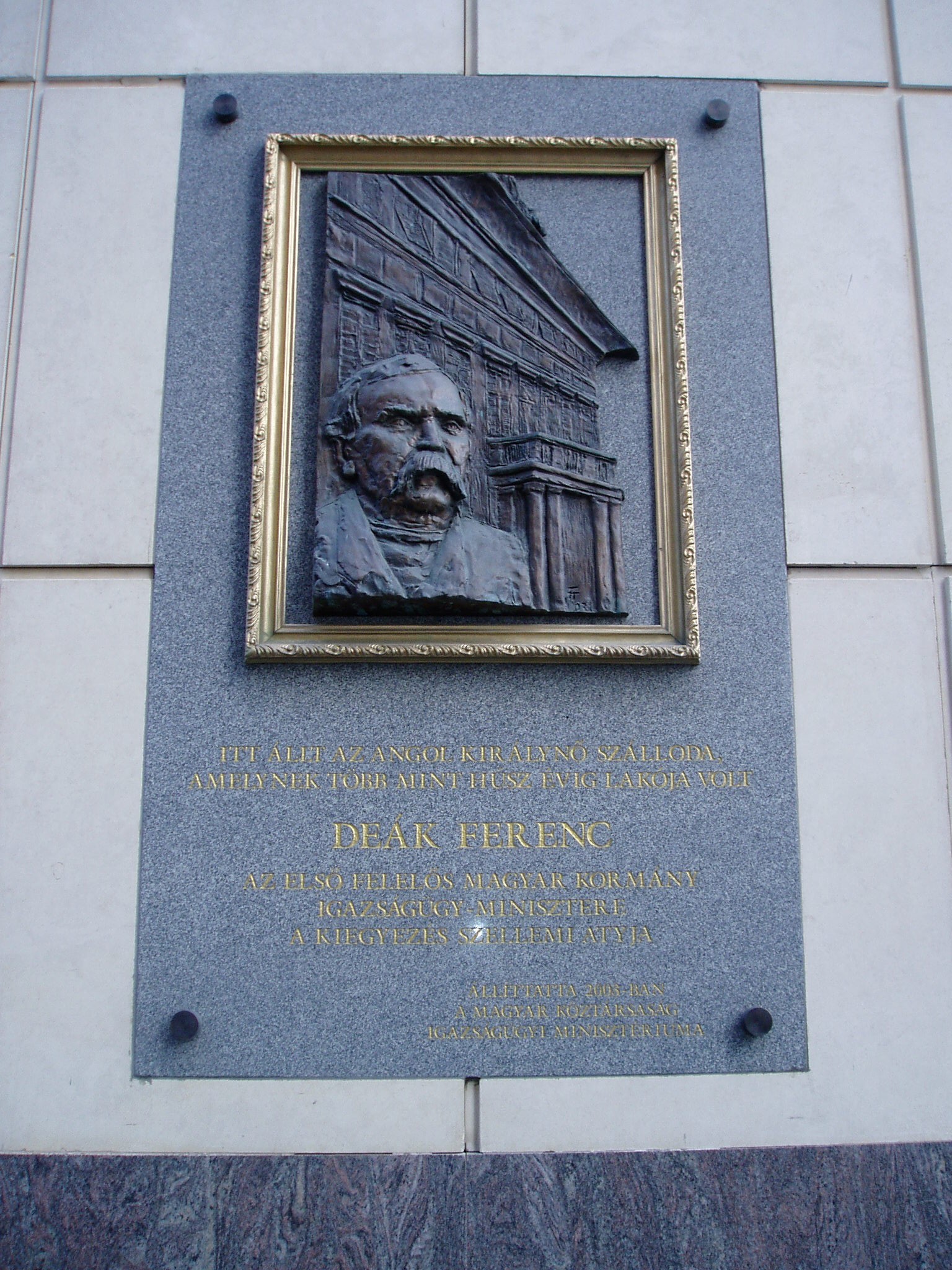 Nyilvános 909 | 1498 | Budapest V. Deák Ferenc utca 1. | A mai Deák Ferenc utca 1. - Türr István utca 8. - Apáczai Csere János utca 9. számú épületek által határolt területen állt Kemnitzer János szerencsejátékból meggazdagodott tímármester 1792-ben épült kétemeletes monumentális lakóháza. Ennek földszintjén működött a Kemnitzer-, vagy másik nevén Márványos-kávéház, amelynek - a korabeli leírások szerint - nem akadt párja Európában. Az 1838-as nagy pesti árvíz azonban teljesen elöntötte és tönkretette az épületet, de erős alapfalainak felhasználásával újjáépítették, és új tulajdonosa szállodává alakíttatta. 1839-ben már meg is nyílt, s az akkoriban megkoronázott Viktóriáról nevezték el Angol Királynő szállodának. Az új szálloda is európai hírességgé vált vörösmárvány lépcsőivel, fehér, aranyozott oszlopaival és mahagónifával borított falaival. 1849-ben azonban ismét nagy csapás érte: Pest bombázásakor a környékbeli épületekkel együtt súlyosan megrongálódott. 1850-ben Hild József építette újjá, s ismét régi fényében működött. "Fejedelmek lakóhelyének" nevezték, mert lakott benne királynő, császár, sah, cár, trónörökös. A magyar történelembe azonban azzal írta be a nevét, hogy tizenöt éven át, majdnem haláláig itt élt Deák Ferenc, s itt tárgyalt a kiegyezés előkészítése idején a bécsi udvar megbízottaival. Az Angol Királynő az 1900-as évek elejétől kezdte elveszíteni népszerűségét, amikor elvette Dunára nyíló panorámáját és felülmúlta kényelmét az eléje épített luxushotelek sora. 1916-ban megszűnt, épületét, amelyben ezután a Pénzintézeti Központ működött, az 1940-es években lebontották. A fénykép 2005 májusában készült. Felh. irod.: Konrádyné Gálos Magda: Pest-budai szállók emlékeiből 2. = Budapest 1974. 9. Gundel Imre -Harmath Judit: A vendéglátás emlékei. Bp. Közgazdasági és Jogi Kiadó, 1979 |