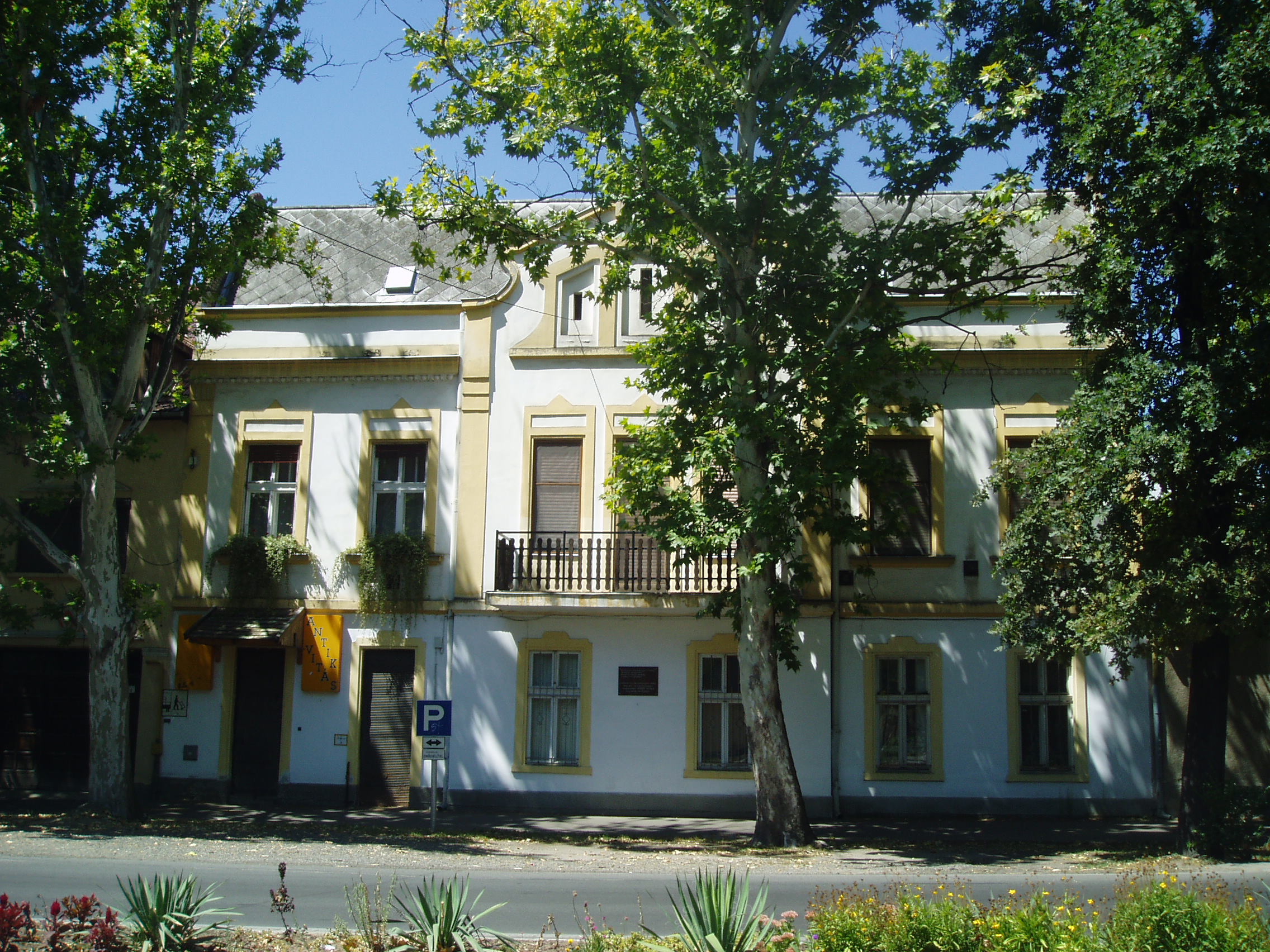 Nyilvános 1169 | 3100 | Rövid leírás | Teljes leírás (1.25 KB) | Hódmezővásárhely, Ady utca 4. 1933-tól itt, az egykori Villasor 14. számú házban lakott dr. Makai Ödön ügyvéd, József Attila sógora. Első felesége József Jolán volt, akitől 1929-ben elvált és a másik nővért, József Etát vette feleségül. A vásárhelyi születésű ügyvéd korábban a Szántó Kovács János utca 28. számú házban, a városközponthoz közel lakott, majd a család ebbe a villa jellegű házba költözött. József Attila gyakran volt náluk vendégségben. 1934 tavaszán négy hónapon keresztül náluk lakott, több verse is itt született. Ekkor ismerkedett meg - ebben a lakásban - a Hódmezővásárhelyre látogató Móricz Zsigmonddal is. Megismerkedésük történetét Móricz József Attila halála kapcsán a Szép Szó folyóirat számára írta meg. Makainak és József Etának három gyermeke született: Zsuzsi, Péter és Ádám. Makai Péter jeles díszlet- és jelmeztervező lett, a Magyar Állami Operaházban működött. Az épületen 1970-ben helyezték el József Attila emléktábláját. A fénykép 2007 júliusában készült. Felh. irod.: Szigeti János: József Attila Hódmezővásárhelyen. = www.nlvk.hu/vik/jahmv.htm |