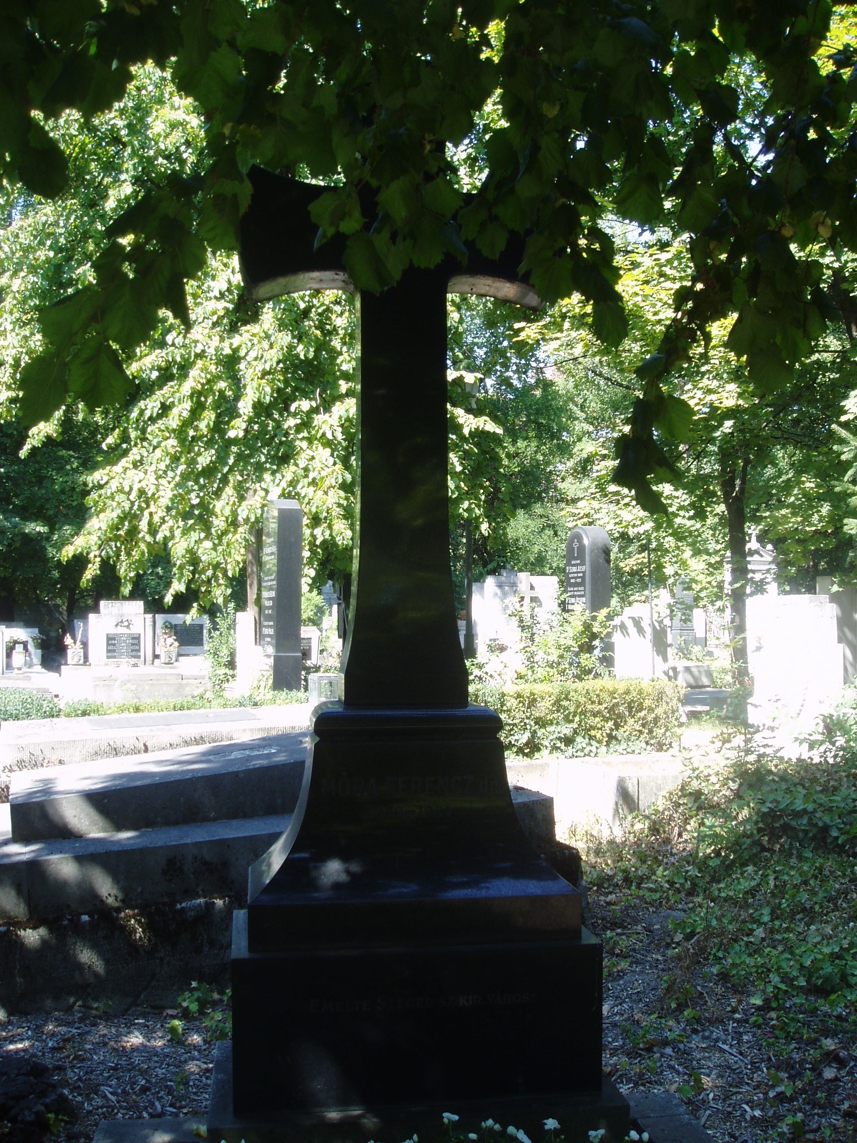 Nyilvános 971 | 2765 | Szeged, Fonógyári út: Belvárosi temető: Móra Ferenc sírja | A temetőt az 1831. évi kolerajárvány után létesítették. Itt nyugszik az 1934. február 8-án elhunyt Móra Ferenc. Móra mint a Szegedi Napló (lásd: Szeged, Dugonics tér 12.) munkatársa került Szegedre. A lapnak 1913–1919 között főszerkesztője volt, majd haláláig állandó munkatársa maradt. 1904-től a Somogyi-Könyvtár és a Közművelődési Palota (lásd: Szeged, Roosevelt tér 1-3.) tisztviselője, könyvtárosa, majd régésze, s Tömörkény István halála után a múzeum igazgatója volt. Rákban hunyt el életének 55. évében. A fénykép 2007 júliusában készült. Felh. irod.: Péter László: Szeged. Bp. Panoráma, 1981 www.sk-szeged.hu/kiallitas/mora/moraferenc.html |