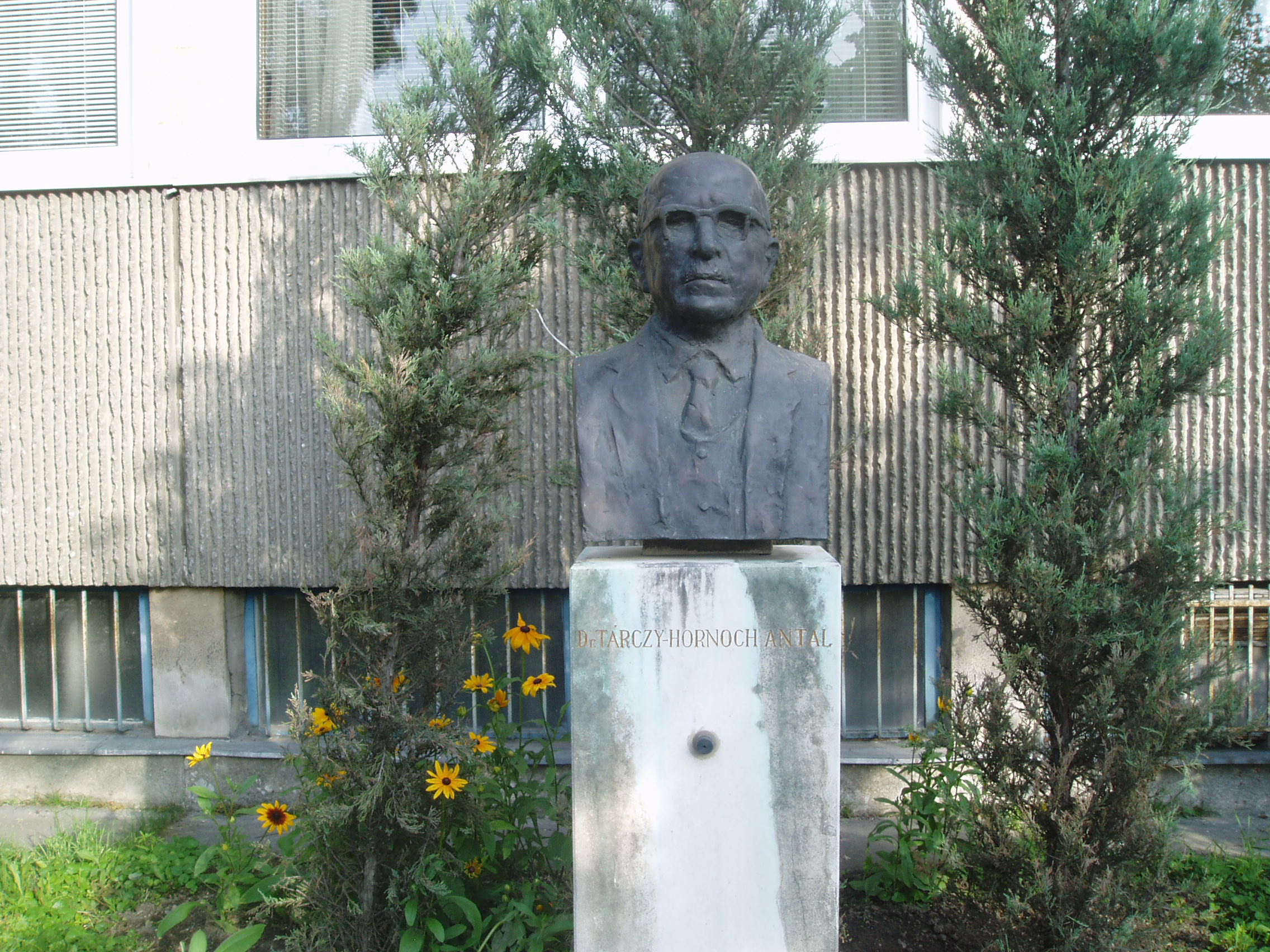 Nyilvános 847 | 1416 | Sopron, Csatkai Endre utca 6-8. | A modern épületben a Magyar Tudományos Akadémia Geodéziai és Geofizikai Kutatóintézete működik. Az itt dolgozó mintegy 35 kutató geodéziai és geofizikai alapkutatásokban vesz részt. Homlokzatán 1990-ben avatták fel dr. Tárczy Hornoch Antal (1900-1986) emléktábláját. A bányamérnök, egyetemi tanár, akadémikus a magyar bányamérési, földmérési és geofizikai tudományok és hagyományok elhivatott hirdetője és oktatója volt. Kezdeményezésére indult meg Sopronban 1949-ben az önálló földmérőmérnök, 1951-ben pedig a geofizikus-mérnök képzés. Mellszobor is őrzi emlékét, alkotója Varga Éva. A fénykép 2008 júniusában készült. Felh. irod.: http://www.ggki.hu |