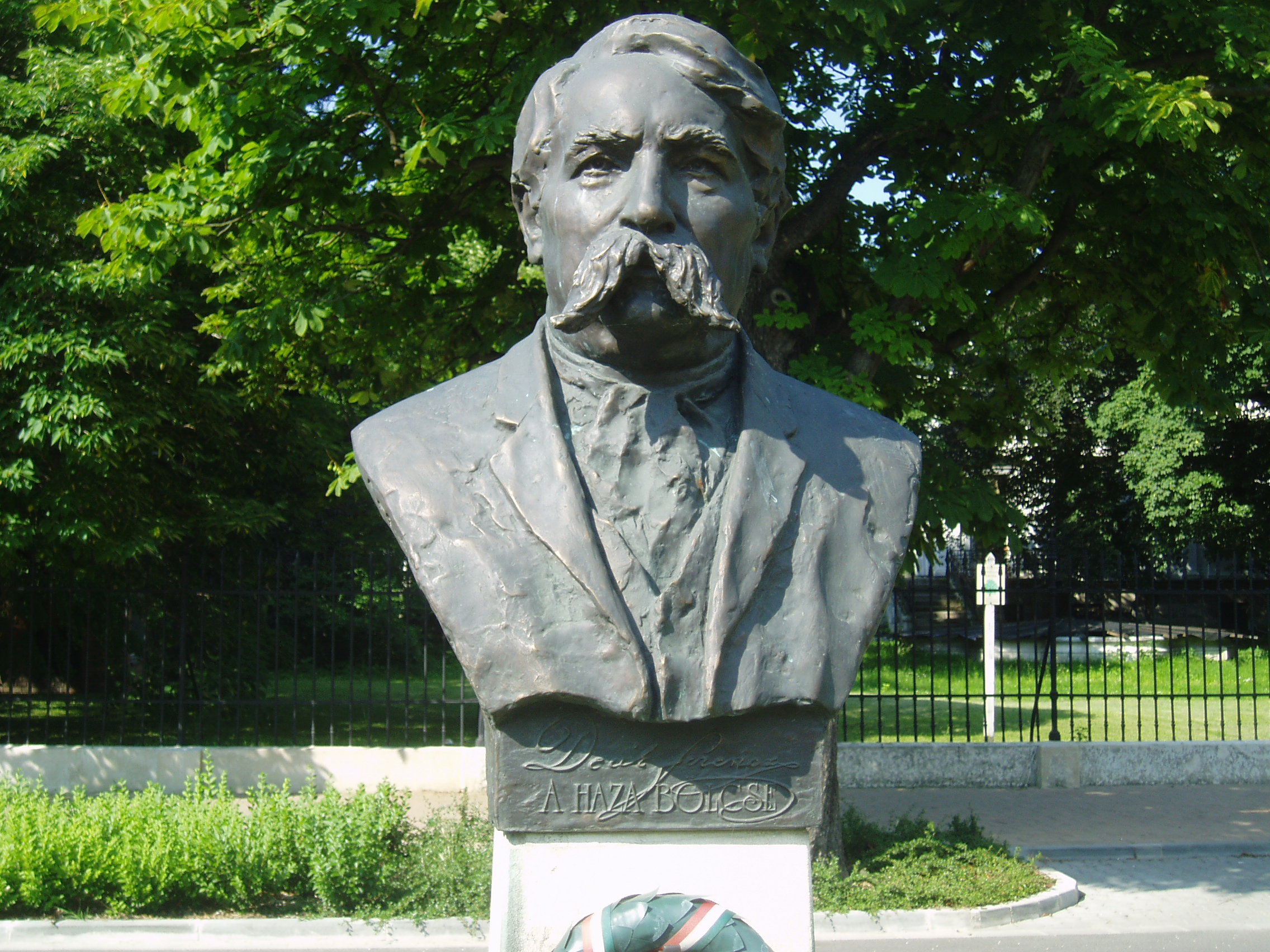 Nyilvános 890 | 2119 | Sopron, Deák tér | Sopron leghosszabb terét az itt folyó Rák patak beboltozásával alakították ki s reprezentatív kialakítású, historizáló stílusú épületek veszik körül. A téren első és második világháborús emlékművek mellett a névadóra, Deák Ferencre is szobor emlékeztet. Kutas Ferenc alkotását 2003-ban avatták fel. A fénykép 2008 júniusában készült. |