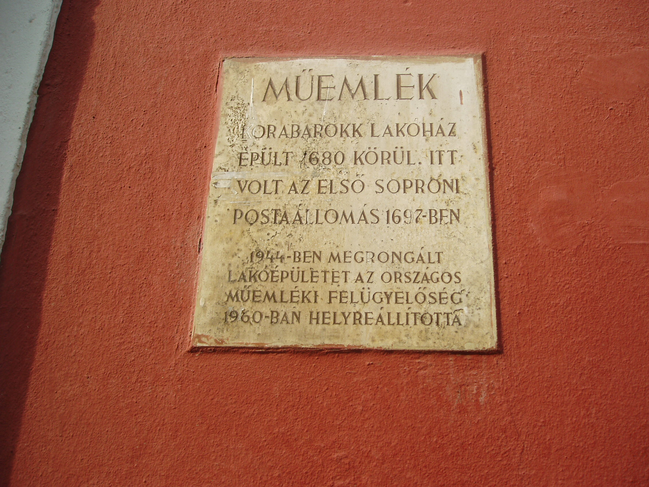 Nyilvános 812 | 1304 | Sopron, Fegyvertár utca 23. | A belvárosban, a Templom utca 21. szám után balra nyílik a rövid Fegyvertár utca. A 23. számú, 1680 körül korabarokk stílusban épült ház várostörténeti jelentősége, hogy 1697-ben itt volt az első postaállomás. A fénykép 2008 júniusában készült. Felh. irod.: Czellár Katalin: Sopron. 3. jav. kiad. Bp. Panoráma, 2000 |