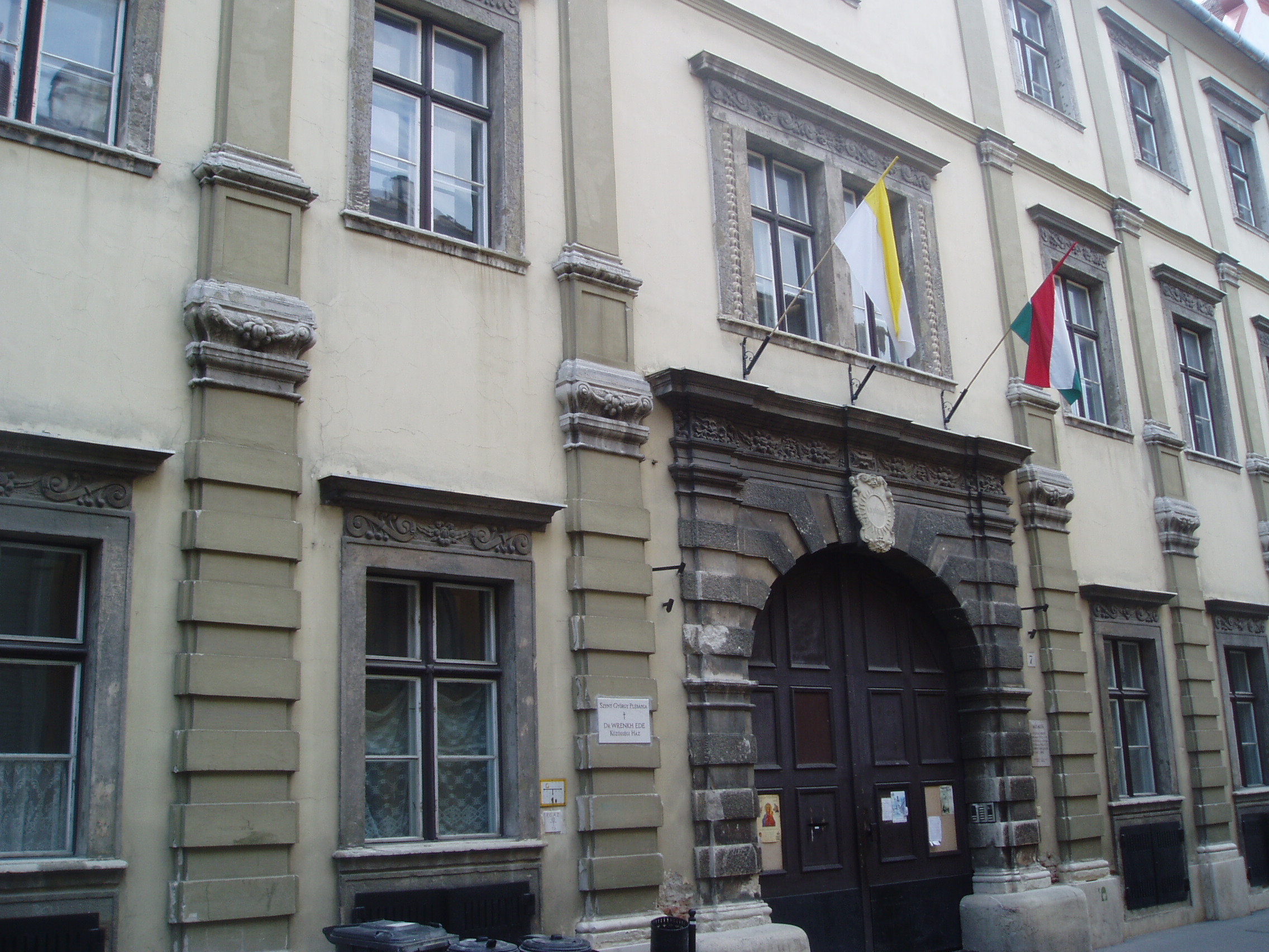 Nyilvános 770 | 1157 | Sopron, Szent György utca 7. Káptalan-ház | A kétemeletes barokk palotát Vitnyédi István, Sopron város jegyzője, Zrínyi Miklós prókátora építtette 1650 körül. Mint a város alkalmazottja, Vitnyédi ingyen kapta az építőanyagot. Amikor a polgárok látták, hogy palotája milyen pompás lesz, perbe fogták, s megtiltották a tervezett díszes erkély megépítését. Vitnyédi később részt vett a Wesselényi-összeesküvésben. Vagyonát elkobozták, háza a jezsuitáké lett, akik rendház céljára átalakították. 1779-ben a Szent György társaskáptalan tulajdonába került, amely közel két évszázadig birtokolta. Az épülethez csatlakozik a város dómja, a Szent György-templom. A kép 2008 júniusában készült. Felh. irod.: Czellár Katalin: Sopron. 3. jav. kiad. Bp. Panoráma, 2000 |