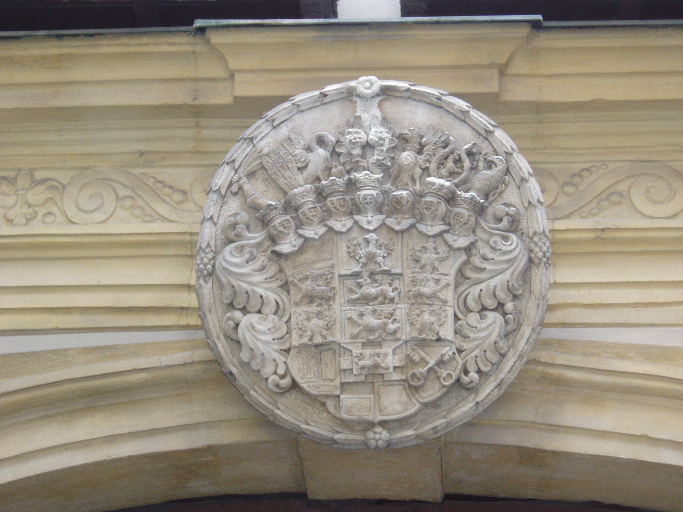 Nyilvános 758 | 1078 | Sopron, Szent György utca 12. Eggenberg-ház | A XV. századi eredetű, 1674-ben bővített, barokk homlokzatú Eggenberg–ház kapuját a brandenburgi választófejedelem címere díszíti. Udvarán emeleti árkádsor fut körbe. A soproni evangélikusok történetében fontos szerepe volt egykori tulajdonosának, a brandenburgi őrgróf rokonának, Eggenberg hercegnének, aki 1674–76 között engedélyt kapott házában istentiszteletek tartására, ami a Lackner–ház (Fő tér 7.) kivételével tilos volt a városban. Ebből az időszakból maradt meg a kapuval szemközt az épület mellvédjébe épített faragott kő szószék. Alatta ajtó vezet a házban kialakított Liszt szalon helyiségeibe. A kávéházban kiállítás látható a budapesti Liszt Ferenc Emlékmúzeum (lásd: Budapest, VI. Vörösmarty u. 35.) anyagából a Sopronhoz több szállal kötődő Liszt Ferenc életútjáról. Lisztet és körét egy nagyméretű freskó is megidézi a szalon központi helyiségében. A kávéházban rendszeresen koncertekkel és gasztronómiai eseményekkel hódolnak a halhatatlan mester előtt. Az épület előtt járdába ágyazott kis bronztábla jelzi, hogy e hely a soproni Liszt Ferenc sétaút állomása. A közelmúltban jelölték ki azt a virtuális útvonalat, amely Liszt legfontosabb soproni emlékhelyeit köti össze, s melynek további pontjai a következők: Fő tér 8. (Storno–ház), Templom utca 6. (Bezerédj–ház), Petőfi tér 3. (a régi kaszinó), Széchenyi tér 15. (Liszt Ferenc Konferenciaközpont – az egykori új kaszinó, illetve ennek Templom utcai oldalánál álló Liszt–mellszobor). A kép 2008 júniusában készült. Felh. irod.: Czellár Katalin: Sopron. 3. jav. kiad. Bp. Panoráma, 2000 www.lisztfestival.hu |