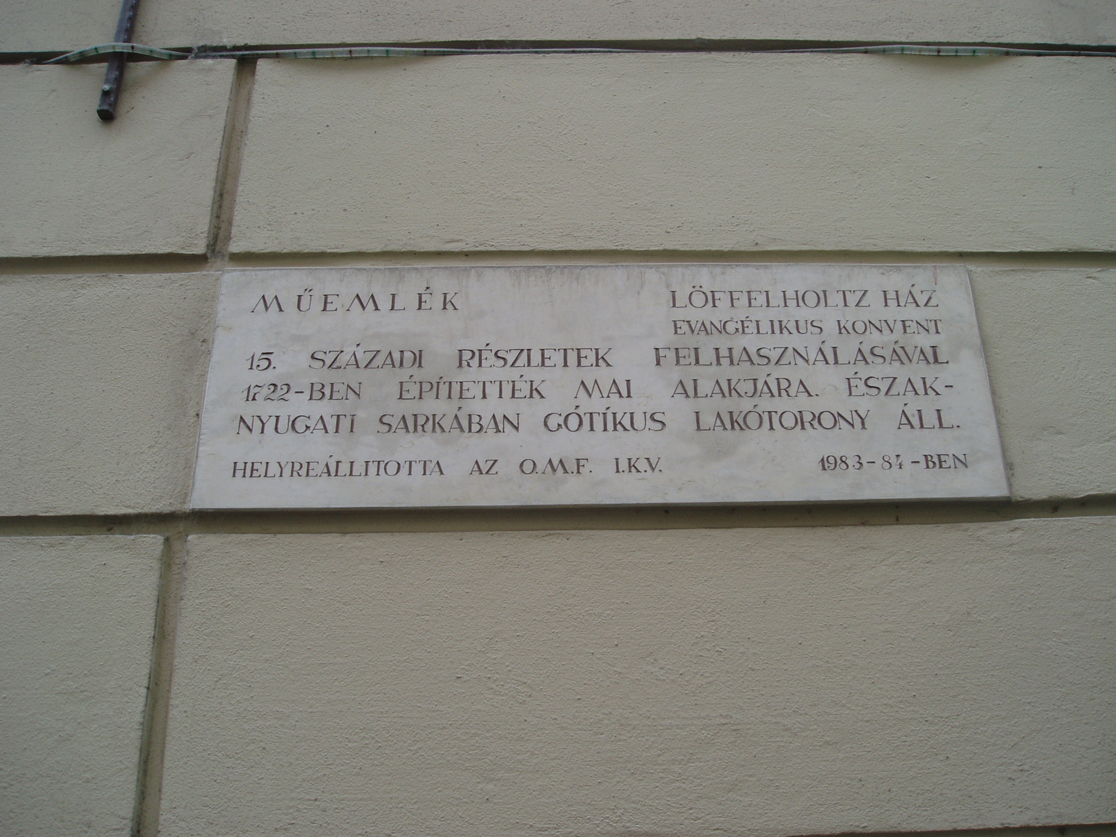 Nyilvános 764 | 1154 | Sopron, Szent György utca 14. Evangélikus konventház. | A középkori eredetű egyemeletes barokk lakóház jelenlegi külsejét a XVIII. század első negyedének vége felé kapta. Ez volt a soproni evangélikus gyülekezet ún. Gemein–Haus épülete, azaz a konventház. Eredetileg a szomszéd házat (lásd: Sopron, Szent György utca 12.) is birtokló Eggenberg hercegné tulajdona volt, aki halálakor az evangélikus egyházra hagyta, amely később azt Löffelholtz bárónénak adta el. A báróné, aki Jókai Mór regényében, A lőcsei fehér asszonyban játszik szerepet, az ingatlant ismét az evangélikus konventre hagyományozta. Udvarában gótikus torony áll. Ebben a házban lakott Wohlmuth János (1643–1724) zeneszerző és orgonaművész. Valószínűleg ő volt a zenetanára Stark Jánosnak, egy helybeli fogadós (lásd: Sopron, Várkerület 55.) fiának. A feltételezések szerint a ma Stark–féle virginálkönyvként számon tartott kézirat táncait és egyéb kisebb darabjait Wohlmuth kottázta le a Stark–fiú számára, mintegy hangszeriskolaként. A katolikus főúr, Esterházy Pál nádor — maga is kiváló muzsikus, a Harmonia Caelestis szerzője — is rá, az evangélikus orgonistára bízta fiai hangszeres tanítását. A kép 2003-ban készült. Felh. irod.: Czellár Katalin: Sopron. 3. jav. kiad. Bp. Panoráma, 2000 Bárdos Kornél: Sopron zenéje a 16–18. században. Bp. Akadémiai Kiadó, 1984 Payr Sándor: Wohlmuth János. = Sopronvármegye, 1929. I–II |