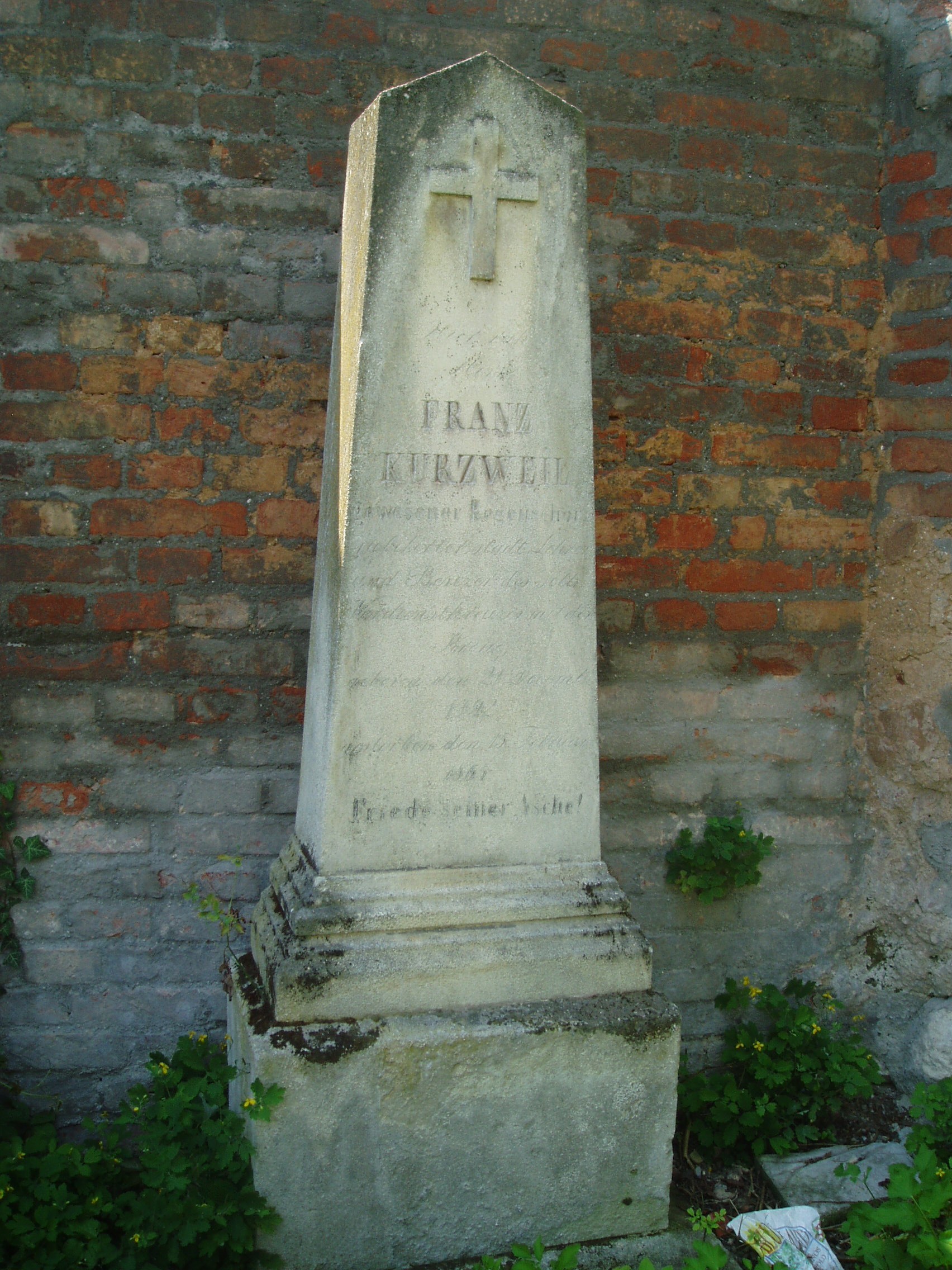 Nyilvános 853 | 2651 | Sopron, Szent Mihály utca: Szent Mihály-temető: id. és ifj. Kurzweil Ferenc sírja | 1780-ban a Szent Mihály-templom udvarán kívül létesült a ma már teljesen betelt, régi-nek nevezett Szent Mihály-temető. Területét részben az egykori külső városfal ma is álló szakaszai határolják. Benne szép, XVIII-XIX. századi síremlékek láthatók Itt nyugszik a Sopron zenei életében jelentős szerepet játszott Kurzweil család több tagja. A képen látható sírban nyugszik id. és ifj. Kurzweil Ferenc. Id. Kurzweil Ferenc (1792–1865) a soproni katolikus egyházi zene legértékesebb vezetője és zeneszerzője volt. Nevéhez fűződik a Soproni Zeneegyesület megalapítása. Fia, ifj. Kurzweil Ferenc (1826–1875) 1857-től haláláig a Szent Mihály-templom karnagyaként működött. A kép 2008 júniusában készült. Felh. irod.: Czellár Katalin: Sopron. 3. jav. kiad. Bp. Panoráma, 2000 Síremlékek Győr-Moson-Sopron megyében. Bp. Nemzeti Kegyeleti Bizottság, 2004 |