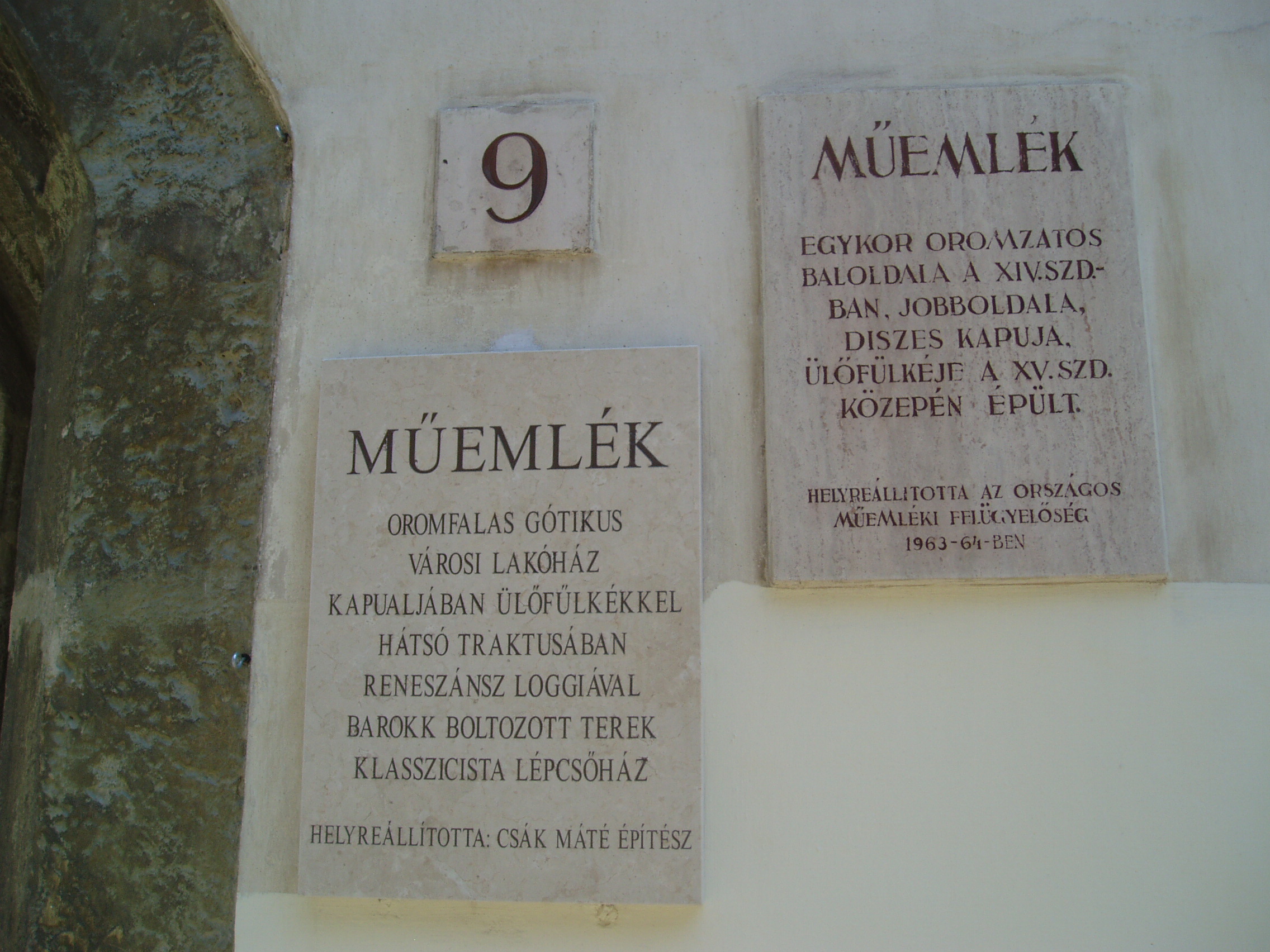 Nyilvános 791 | 1084 | Sopron, Templom utca 9. | Az egyemeletes lakóház eredetileg a XIV. században épült, díszes kapuja a XVIII. században készült. A későbbiekben többször átalakított épület 1734 és 1782 között több magyar nemesi család birtokában volt, később Bezzegh János soproni tanácsos vásárolta meg. A kép 2008 júniusában készült. Felh. irod.: Czellár Katalin: Sopron. 3. jav. kiad. Bp. Panoráma, 2000 |
