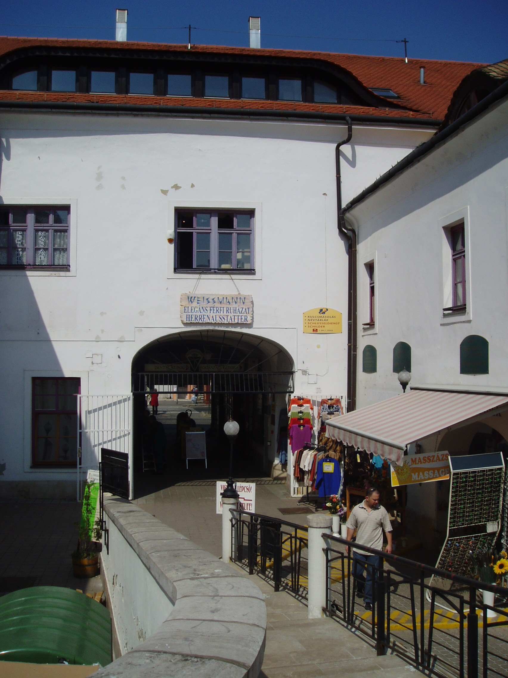 Nyilvános 722 | 1081 | Sopron, Várkerület 73. | A házban egykor vendégfogadó működött, amelyet 1595–1833 között Vörös Ökörnek hívtak, később neve Magyar Király volt. Itt szállt meg 1840-es és 1846-os soproni látogatásakor Liszt Ferenc. Az épületben ma a Korona Üzletház működik. A kép 2003-ban készült. Felh. irod.: Czellár Katalin: Sopron. 3. jav. kiad. Bp. Panoráma, 2000 |