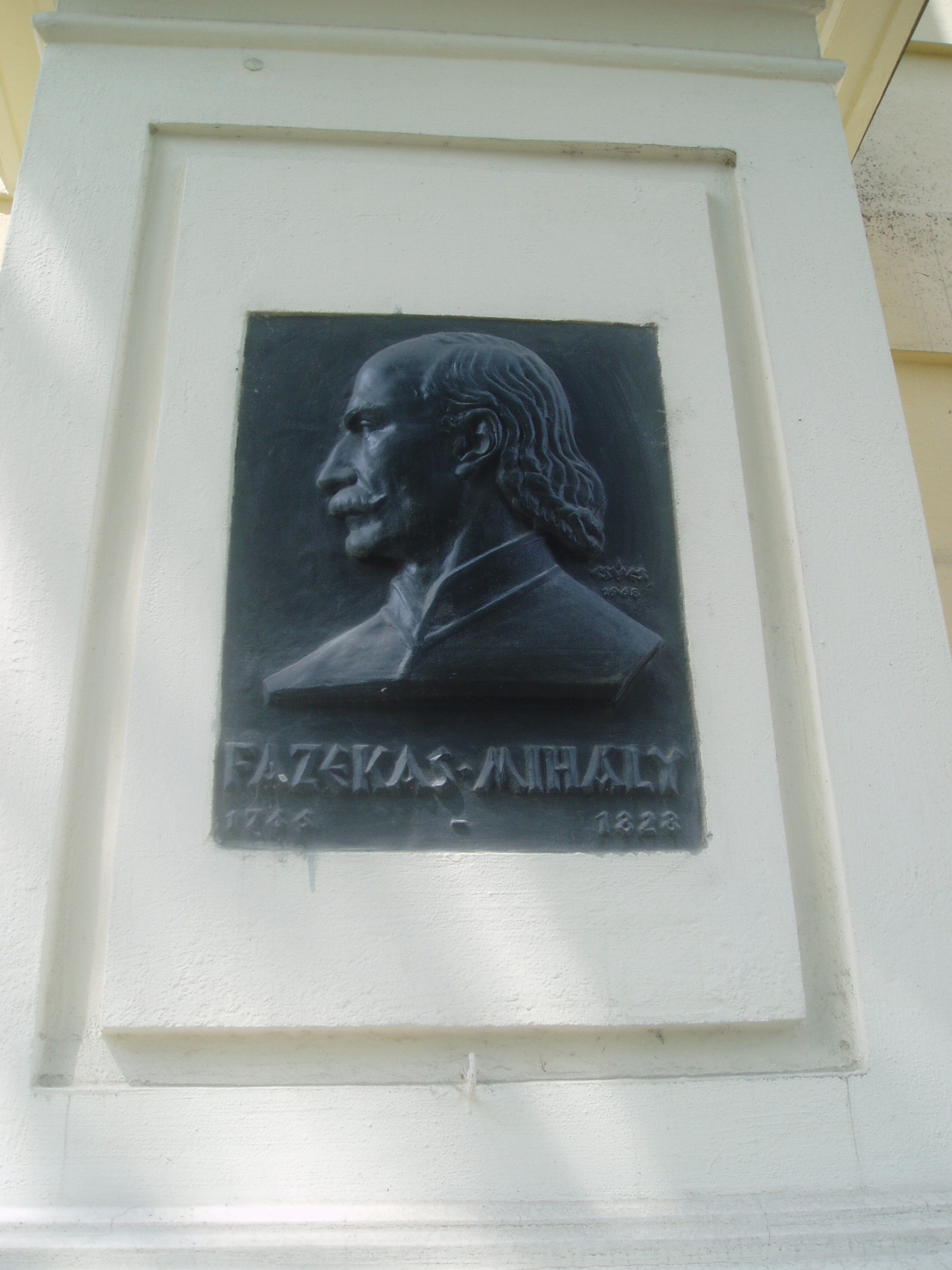 Nyilvános 890 | 1357 | Debrecen, Kálvin tér 16. Református Kollégium: Fazekas Mihály domborműve | A Kollégium mai épülete a magyar klasszicista építészet nagyszerű példája. A főbejárat homlokzatát Nagy Sándor János bronz domborművei díszítik. Kettős oszlopot hordozó széles táblán Kálvin és Zwingli egymással szembeforduló alakja látható. A mellette lévő oszlopon Arany János bronz domborművét találhatjuk, míg a Füvészkert utca felől Csokonai Vitéz Mihály emlékét örökítették meg. Ugyancsak a főbejáraton látható Kölcsey Ferenc portréja, Nagy Sándor János egyik legszebb alkotása. A sort Fazekas Mihály ésMóricz Zsigmond portréja egészíti ki. Medgyessy Ferenc bronz domborműve a kollégium hősi halottainak, tanároknak és diákoknak állít emléket. A képen Fazekas Mihály domborműve látható, aki a Kollégium diákjaként - Csokonaihoz hasonlóan - szintén összekülönbözött a tanári karral, s 16 éves korában katonának állt. Miután tucatnyi harcteret végigküzdött az osztrák hadseregben, ráeszmélt, hogy neki nincs leszámolnivalója a felvilágosodás eszméinek győzelméért küzdő francia seregekkel, s főhadnagyi rangban nyugalomba vonult. Debrecenbe költözött (lásd: Debrecen, Piac utca 68.). Itt is hunyt el, sírja a Köztemetőben van (lásd: Debrecen, Bocskai út). A fénykép 2006 júniusában készült. Felh. irod.: Kovács Gergelyné: Debrecen. Bp. Panoráma, 1981 Papp Antal: Debrecen. Bp. Panoráma, 1976 Győri L. János: "Egész Magyarországnak és Erdélynek világosító lámpása": a debreceni Református Kollégium története. Debrecen, 2006 |