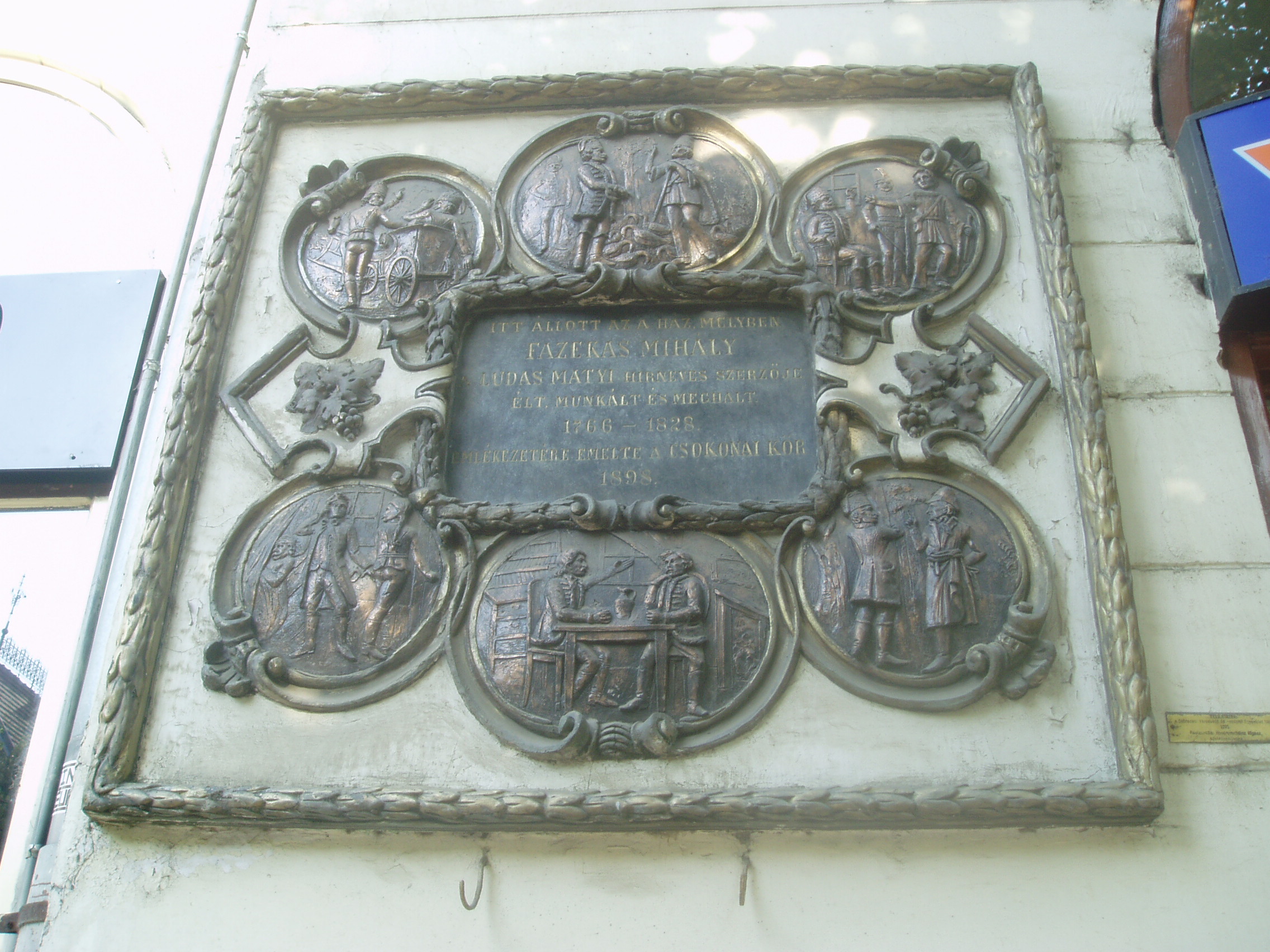 Nyilvános 865 | 1589 | Debrecen, Piac utca 68. | Debrecen fő utcájának a vasútállomás felé eső részén Fazekas Mihály díszes emléktáblája olvasható: itt állott az a ház, amelyben Fazekas Mihály, a Lúdas Matyi hírneves szerzője élt, munkált és meghalt. A középső feliratos táblát hat ovális bronz dombormű veszi körül: öt a Lúdas Matyiból vett jeleneteket mutat be, a hatodik pedig Fazekast és jóbarátját, Csokonai Vitéz Mihályt ábrázolja borozgatás közben. Az emléktábla érdekessége, hogy alkotója Tóth Árpád költő édesapja, Tóth András szobrászművész. Fazekas Mihály 16 éves korában katonának állt, s tucatnyi harcteret küzdött végig a napóleoni háborúk idején, mígnem ráébredt, hogy neki nincs semmi keresnivalója osztrák hadseregben. 1796-ban főhadnagyi rangban nyugalomba vonult, s Debrecenben, az egykor ezen a helyen állott házban telepedett le: írt, olvasott, kertészkedett. Csokonai több ízben meglátogatta itt, s versben meghitt képet festett barátjáról:: Számlálgatja víg orcával az ezüst jácintokat, S az ibolyák aranyával a szagos gyémántokat. ............................. Majd a rendtartó méheknél Kedve telve ácsorog, S érzi, hogy az embereknél Az ország nem így forog. Már meglátott: gereblyéjét És kapáját elteszi S félig harmatos Linnéjét Pipája mellé veszi. Jer, barátom, lépegessünk Kiskertednek útjain, S dohogás nélkül nevessünk Mások bolondságain... Felh. irod.: Papp Antal: Debrecen. Bp. Panoráma, 1976 |