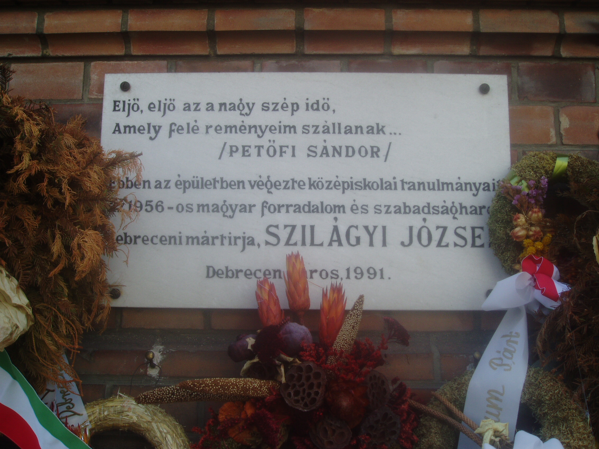 Nyilvános 851 | 1442 | Debrecen, Péterfia utca 1-7. | A Kölcsey Ferenc Református Tanítóképző Főiskola mostani otthona 1911-13 között épült Petz Samu tervei alapján. Korábban itt a főgimnázium működött. Ide járt iskolába és itt is érettségizett a debreceni születésű Szilágyi József (1917-1958) politikus, aki 1944 végén rövid ideig Debrecen rendőrkapitánya is volt. 1956-ban megszervezte és vezette Nagy Imre miniszterelnöki titkárságát. November 4-én családjával együtt a jugoszláv követségre menekült, majd őt is Romániába internálták. Snagovban tartóztatták le. A Nagy Imre per vádlottjaként 1958. április 24-én kivégezték. A fénykép 2006 júniusában készült. Felh. irod.: www.kfrtkf.hu/index3.html Magyar életrajzi lexikon |