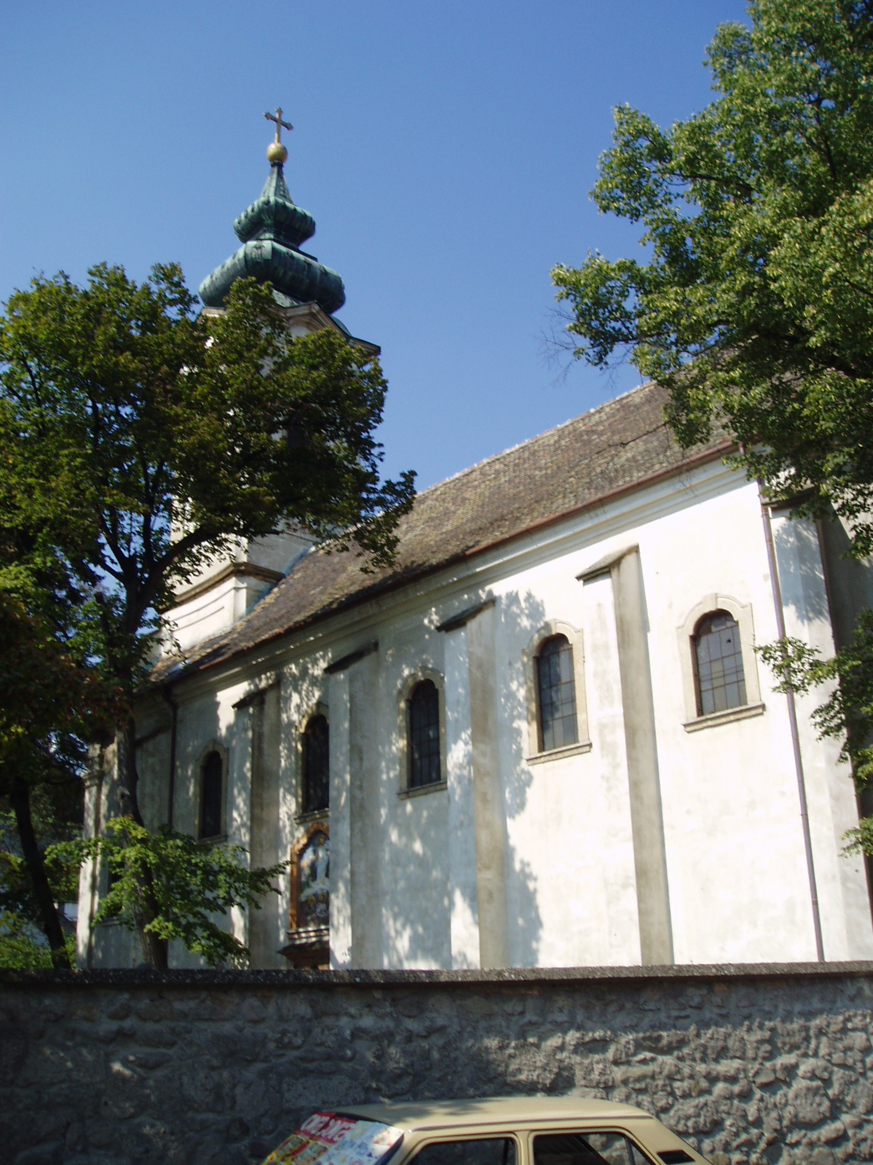 Nyilvános 923 | 1839 | Szentendre, Vujicsics tér: Preobrazsenszka-templom | A középtornyos, barokk Preobrazsenszka-templomot a Boszniából érkezett szerbek építették 1741-1746 között. Klasszicizáló díszítőelemei valószínűleg 1770 után - egy nagyobb felújítás és átalakítás révén - készültek. Toronnyal 1852-ben koronázták meg az épületet. A templomot vastag kőkerítés veszi körül. A kerítésfal korinthoszi oszlopokkal szegélyezett, díszes, kovácsoltvas kapuját a pesti szerb temploméról mintázták, 1803 és 1806 között Olhauser József helybéli lakatosmester készítette. A templom az ortodox (görögkeleti) egyházi műemlékek között kiemelkedő helyet foglal el. Belsejében nagyrészt megmaradt a XVIII. század második felében és a XIX. század elején készült berendezés. Jelentős képzőművészeti érték a templom ikonosztáza, amely a legszebb hazai ikonfalak egyike, az első orosz-ukrán típus szerint épült képfal. A templom körül augusztus 19-én tartják Szentendre legnevezetesebb szerb búcsúját, amellyel Jézus Tábor-hegyi színeváltozásáról emlékeznek meg. Ezeken búcsúkon rendszeresen megjelent és muzsikált Vujicsics Tihamér, aki 1979-ben - Damaszkusz felé tartva - repülőszerencsétlenség áldozata lett. A szerencsétlenség éppen augusztus 19-én vetett véget a szerb származású zeneszerző életének. Rá emlékezve nevezték el róla 2000-ben a templom terét és állították fel emlékkútját (lásd: következő kép). A fénykép 2005 szeptemberében készült. Felh. irod.: Szentendre. Szerk. Sándyné Wolf Katalin. Bp. Panoráma, 1985 www.templom.hu www.vendegvaro.hu |