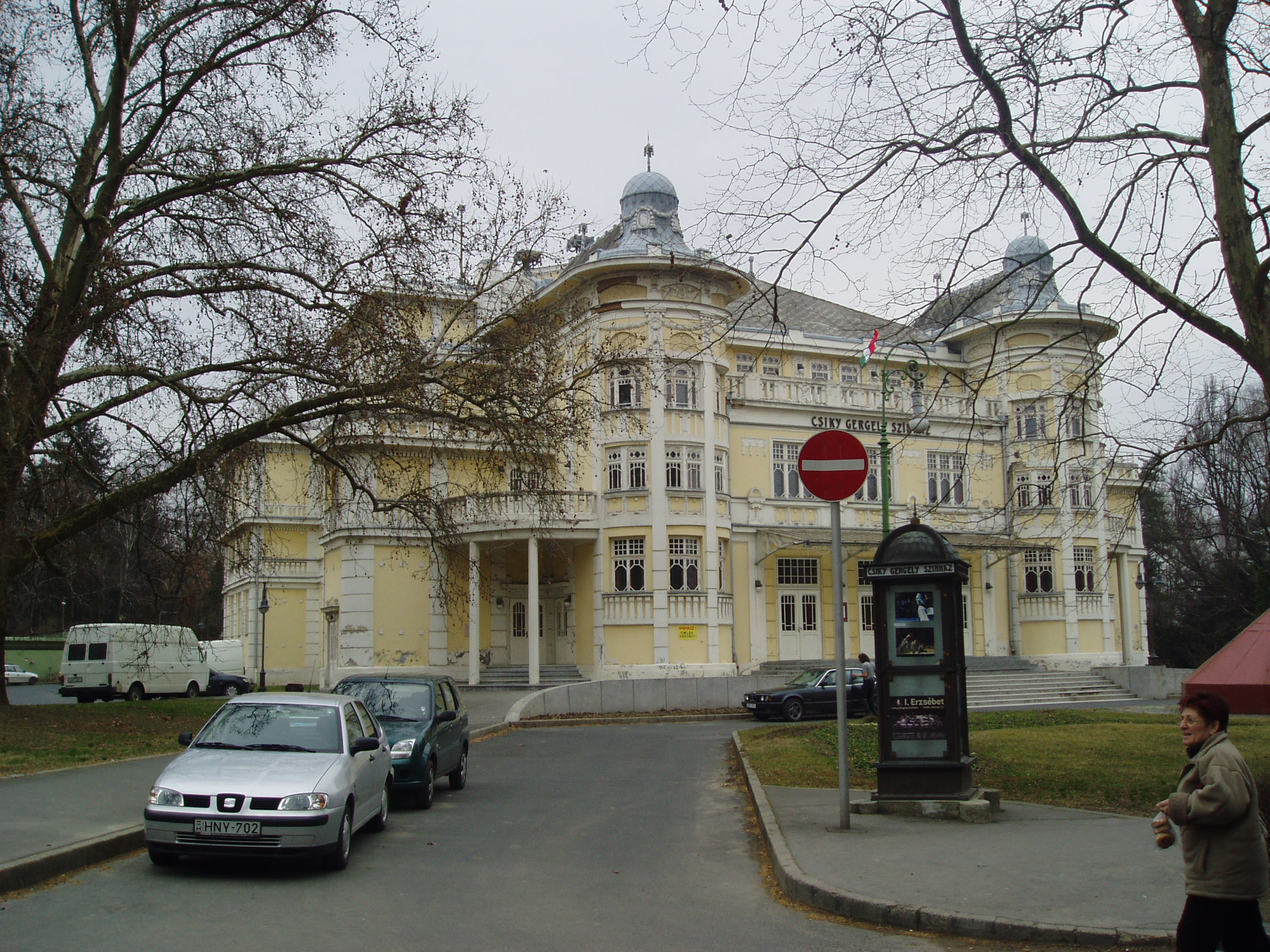 Nyilvános 821 | 1414 | Kaposvár, Rákóczi tér 1. Csiky Gergely Színház | 1911-ben épült szecessziós stílusban Magyar Ede és Stahl József tervei szerint. A maga idejében az ország legmodernebb és legnagyobb vidéki színháza volt. Az erősen leromlott épületet az 1980-as években újították fel. Az első évtizedekben alkalmi társulatok játszottak benne, 1945 után pedig a pécsi színház, illetve a faluszínház játszóhelye volt. Állandó társulata 1955-ben jött létre. Az 1970-es évek elejétől az ország egyik legkiválóbb, mára legendássá vált színházi műhelye lett. A fénykép 2006 márciusában készült. Felh. irod.: Kaposvár és környéke. Kaposvár, Infomark, 2002 Látnivalók Somogy megyében. Miskolc, Well-PRess, 2000 /Vendégváró/ www.csiky.org |