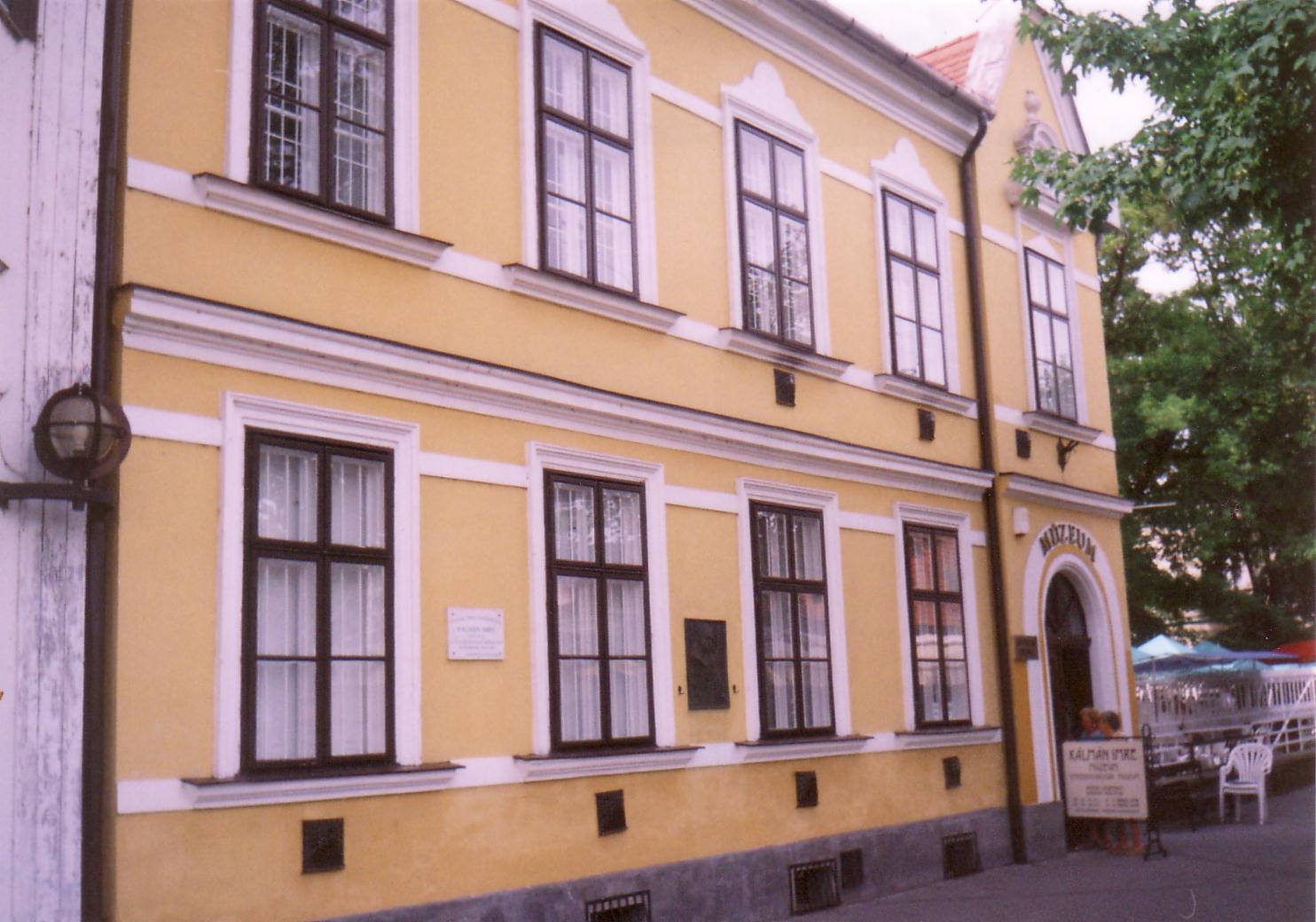 Nyilvános 973 | 1880 | Siófok, Kálmán Imre sétány 5. | Ebben a vasútállomáshoz közeli házban született 1882-ben a magyar operett egyik legjelentősebb zeneszerzője, Kálmán Imre. Születése napja bizonytalan, még a család sem tudta eldönteni, hogy október 24-én, vagy 25-én jött-e a világra. Édesapja Koppstein Károly Siófokon gabonakereskedő és vállalkozó volt. Édesanyja Singer Paula - szelíd, művészlelkű asszony - megérte fia világhírét. Kálmán Imre a harmadik gyerekként született. Nevét később, a gimnáziumi évek alatt magyarosította Kálmánra. A kis Imre korán tanújelét adta zenei érdeklődésének, tehetségének, amit a családból hozott magával: felmenői között anyai ágon muzsikusok, apai ágon kiváló rabbik, tanítók voltak. Még nem volt hat éves, amikor egy nyáron náluk vett ki szobát Liedl Ferenc hegedűművész, tőle kapott először a kisfiú zenei leckéket. Gyermekként járt először színházban is, a házuk közvetlen szomszédságában egykor állott Nyári Színkörben (lásd: Siófok, Kálmán Imre sétány 6.). Elemi iskolai tanulmányait az egytanerős izraelita népiskolában végezte. Első hivatásos zenetanára még elemista korában a helybeli Remcsák Antal volt. Elemi iskoláinak befejeztével Budapesten tanult tovább a Deák téri Evangélikus Főgimnáziumban. Közben édesapja üzleti vállalkozásai teljesen tönkrementek, mindenüket elárverezték, s a család elhagyta Siófokot. Kálmán Imre a budapesti Zeneakadémián végzett tanulmányai mellett családi követelésre jogot is hallgatott. S bár a Zeneakadémián — ahol évfolyamtársa volt például Bartók Béla — még szimfóniákról álmodott, operettszerzőként lett világhírű. Siófoki szülőházában — amelyet először 1955-ben jelöltek meg emléktáblával — 1970-ben özvegye, Kálmán Vera jelenlétében avattak emlékszobát. A mostani, gazdagabb anyagú emlékmúzeumot a zeneszerző születésének 105. évfordulója alkalmából, 1987. október 22-én nyitották meg. Jelenleg az emlékmúzeum a szülőház földszinti termeiben található, az emeleten kortárs képzőművészeti időszaki kiállításokat szoktak rendezni. A fénykép 2006 júliusában készült. Felh. irod.: Kálmán Imre Múzeum Siófok. Szerk. Koch József. Siófok, 2000 http://www.kalmanimre-muzeum.hu/ |