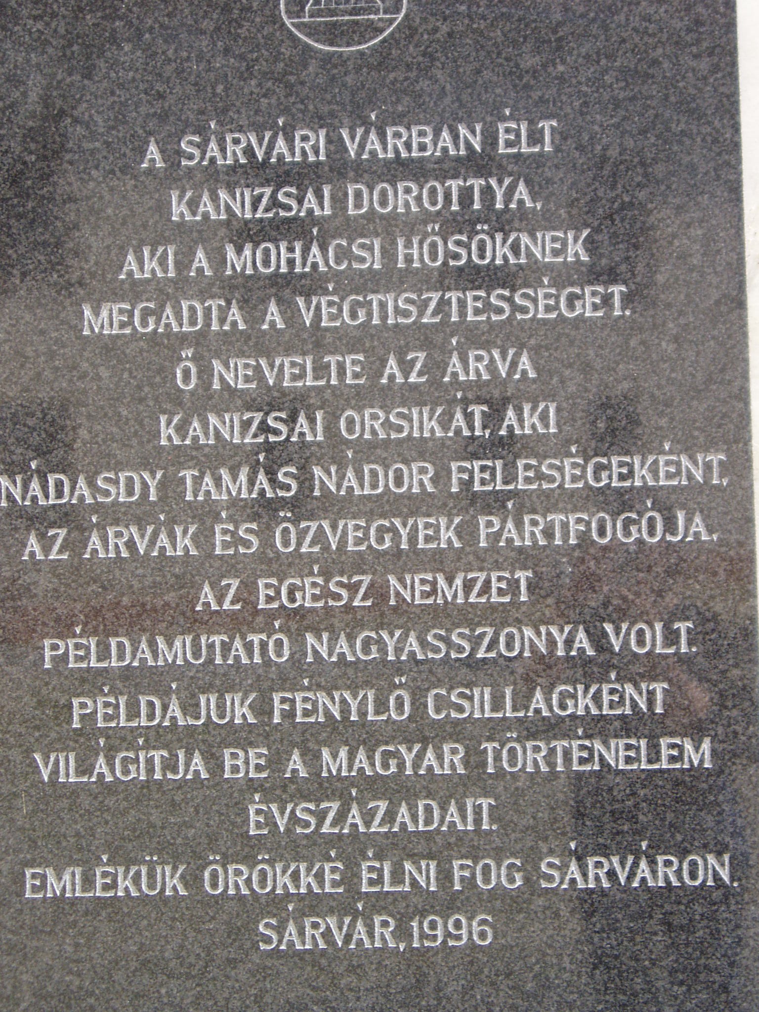Nyilvános 901 | 1686 | Sárvár, Vár | Kossuth tér déli oldalát lezáró reneszánsz várkastély az ország egyik legkiemelkedőbb műemléke, a város szimbóluma. A vár fénykora az a mintegy másfél évszázad volt 1532 és 1671 között, amikor a birtok a Nádasdy család tulajdonában állt, akik európai mércével mérhető udvartartást alakítottak ki Sárváron. A család fényét a köznemesi családból származó Nádasdy Tamás (1498–1572) alapozta meg, aki feleségül vette a Kanizsai család utolsó sarját, az öröksége miatt jogilag fiúsított Kanizsai Orsolyát. A képen Kanizsai Dorottya emléktáblája látható. A fénykép 2005 júniusában készült. Felh. irod.: www.sarvar.hu www.vendegvaro.hu |