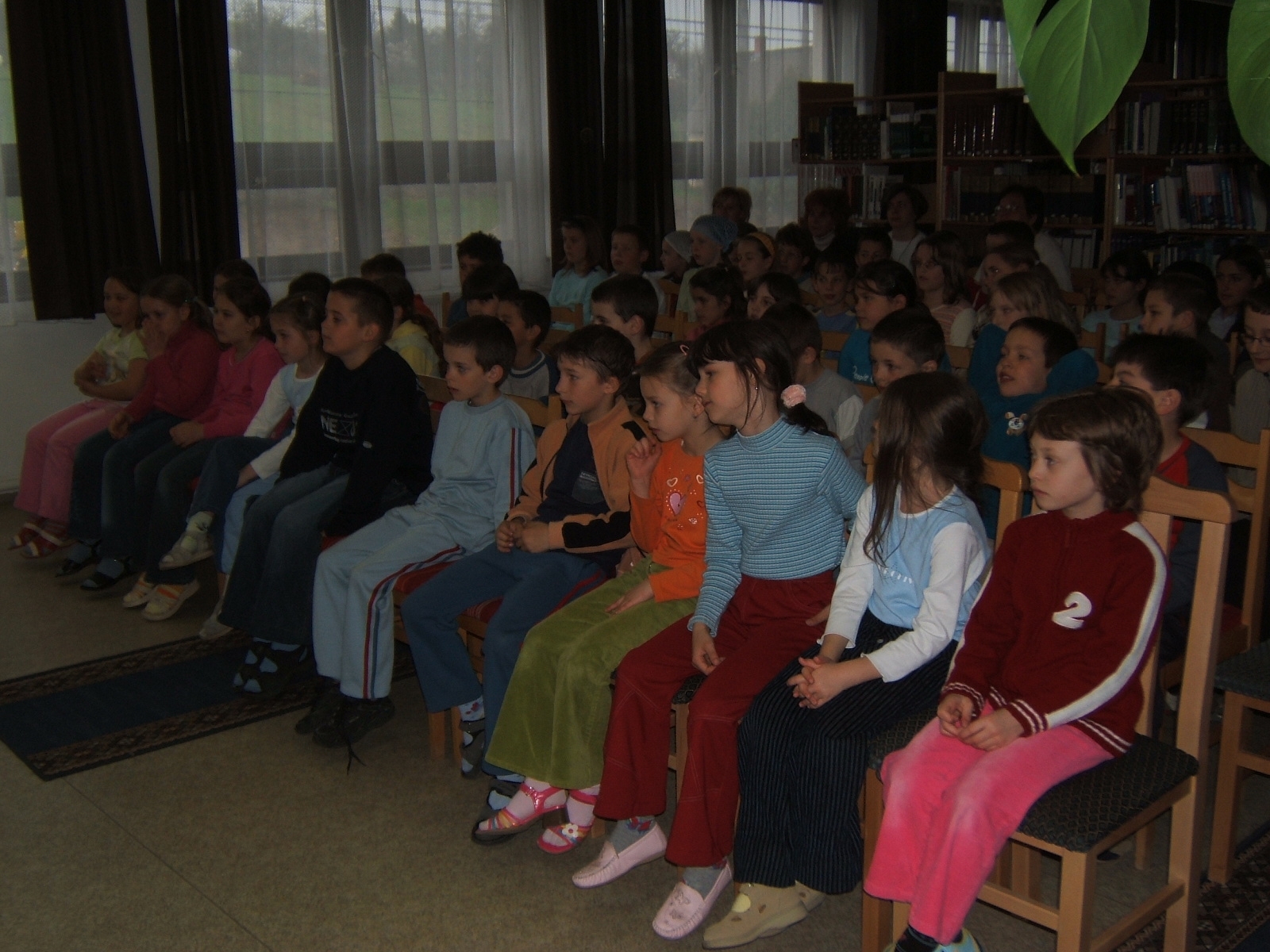 Nyilvános 1198 | 3045 | Költészet napja műsor a zalakarosi könyvtárban 2006. április 11-én. Vendégünk volt a Kardos Banda együttes, aki a kisiskolásoknak és a nagyoknak külön összeálított \"Költészet - minden formában régiektől, maiaktól\" című műsorát adta elő. | |