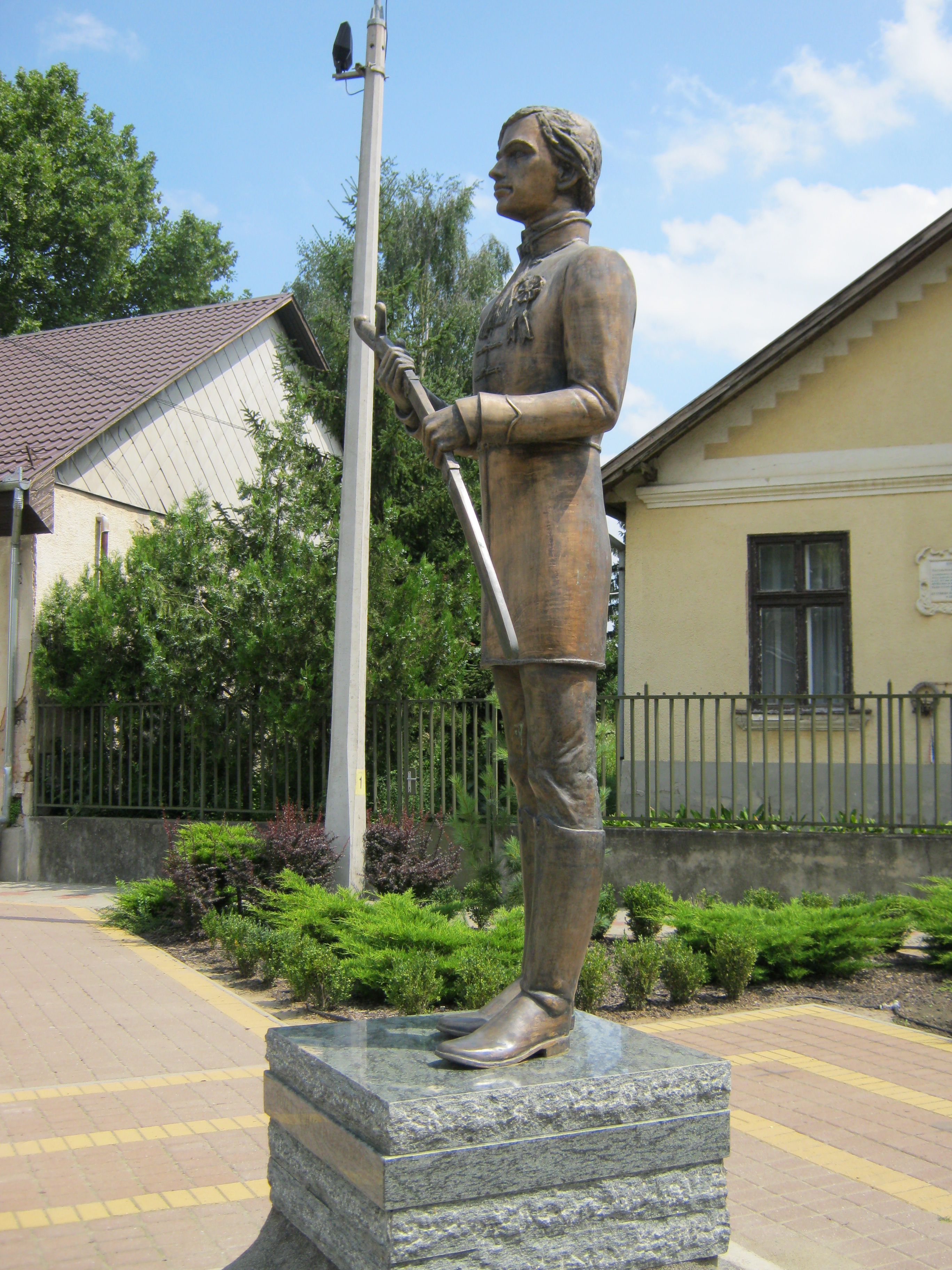 Nagykálló, Szabadság tér 06. előtt a Márciusi ifjú szobra.jpg