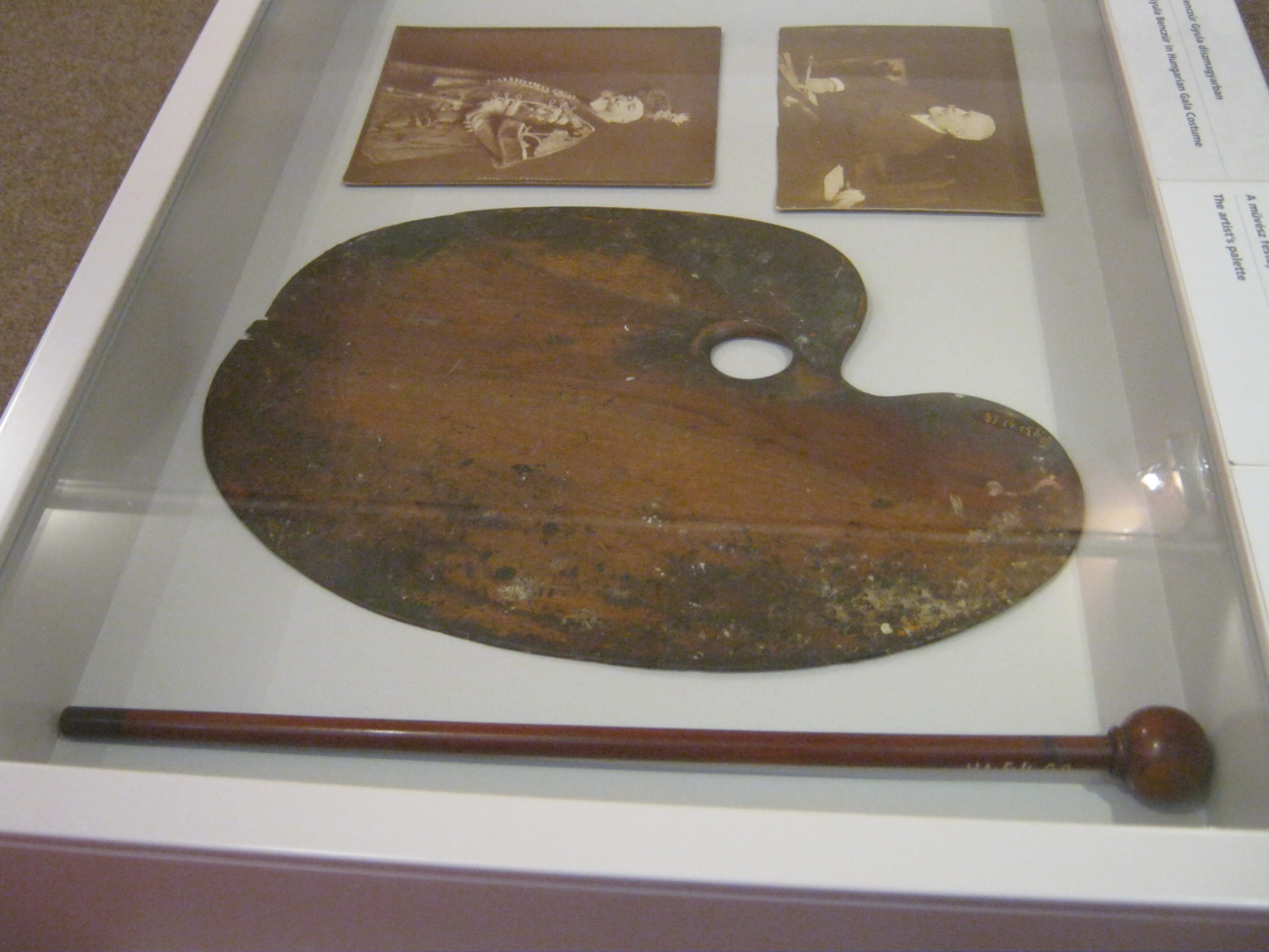 Nyilvános 787 | 1201 | Nyíregyháza, Benczúr tér 21. Jósa András Múzeum | Magyarország egyik legrégibb múzeumát Dr. Jósa András alapította 1868-ban, akinek ma nevét viseli. A képen Benczúr Gyula emlékszobájának részlete. A nagy magyar festőművész 1844-ben Nyíregyházán született (lásd: Nyíregyháza, Kossuth tér 8.), apja gyógyszerész volt. A Benczúr-emlékszobában festmények mellett eredeti bútorok, s a festőművész több használati tárgya tekinthető meg, így egyik palettája is Felh. irod.: Látnivalók Szabolcs-Szatmár-Bereg megyében. Miskolc, Well-PRess, 1999 http://jam.nyirbone.hu A fénykép 2010 augusztus elején készült. |