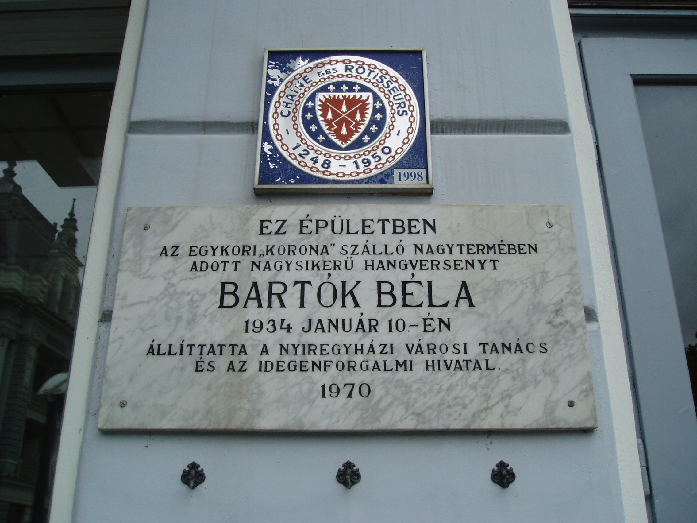 Nyilvános 808 | 1146 | Nyíregyháza, Dózsa György utca 1. Korona szálló | Az eklektikus stílusú szálloda Nyíregyháza központi terének fő ékessége. 1895-ben épült Alpár Ignác tervei szerint. A neves budapesti építész több épületet is tervezett a városnak: az evangélikus elemi iskolát, a megyeházát és a szállodával majdnem egyidőben épült színházat (lásd: Nyíregyháza, Bessenyei tér 13.). A Korona nagyterme Nyíregyháza életében fontos szerepet játszott. Több jeles eseményt emléktábla örökít meg a homlokzaton. Felh. irod.: Látnivalók Szabolcs-Szatmár-Bereg megyében. Miskolc, Well-PRess, 1999 Margócsy József: Utcák, terek, emléktáblák [1.] Nyíregyháza, Városi Tanács – Bp., Közgazd. és Jogi Kiadó, 1984 A fénykép 2010 augusztus elején készült. |