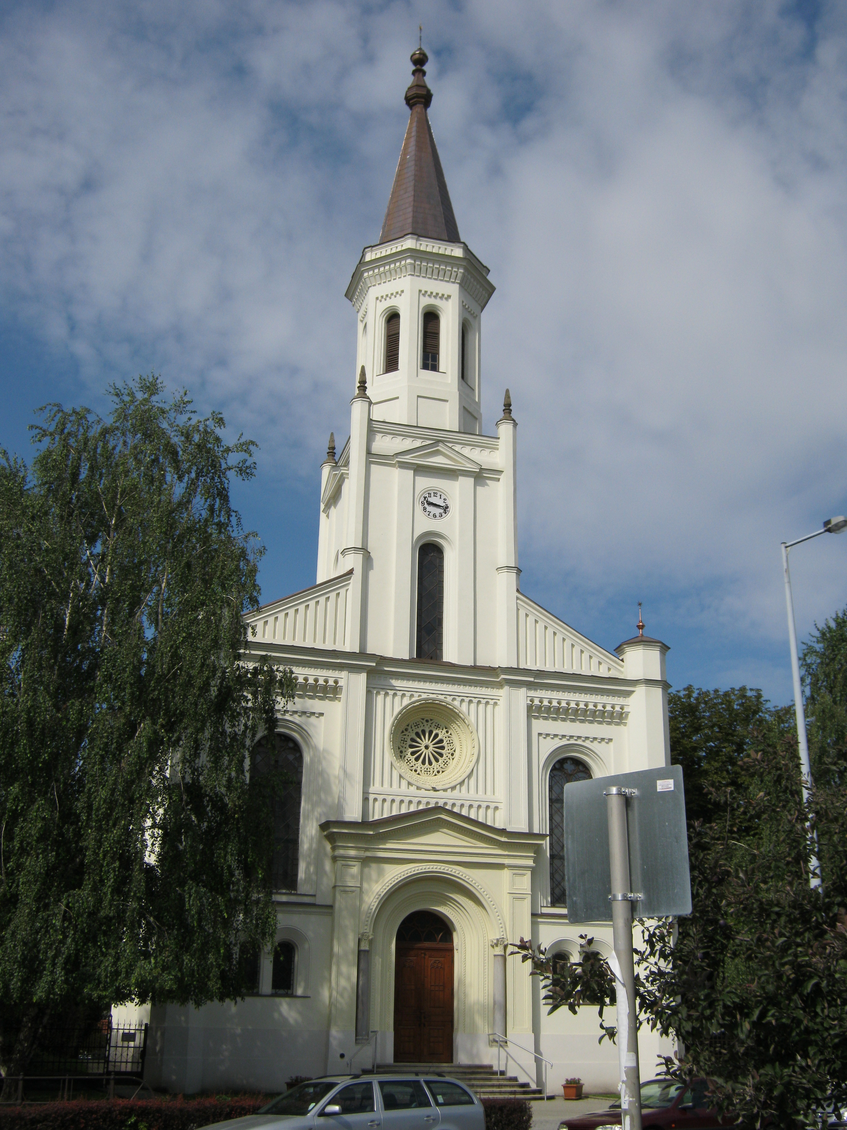 Nyilvános 830 | 1731 | Nyíregyháza, Kálvin tér: Református templom | A Kálvin téren áll az 1873-1882 között, Melhouse János tervei szerint épült romantikus stílusú református templom. A kelet-nyugati fekvésű templom keleti homlokzati tornya 38 m magas, a belső térben összesen 800 ülőhely van. Orgonáját Kerékgyártó István építette. Gyakori és kedvelt koncert-helyszín is. Közelében emlékoszlop tudatja, hogy évszázadokkal korábban már templom állt ezen a területen, amelyet a XVII. századtól kezdtek használni a reformátusok, s amelyről Nyíregyháza a nevét is kapta. Felh. irod.: www.templom.hu A fénykép 2010 augusztus elején készült. |