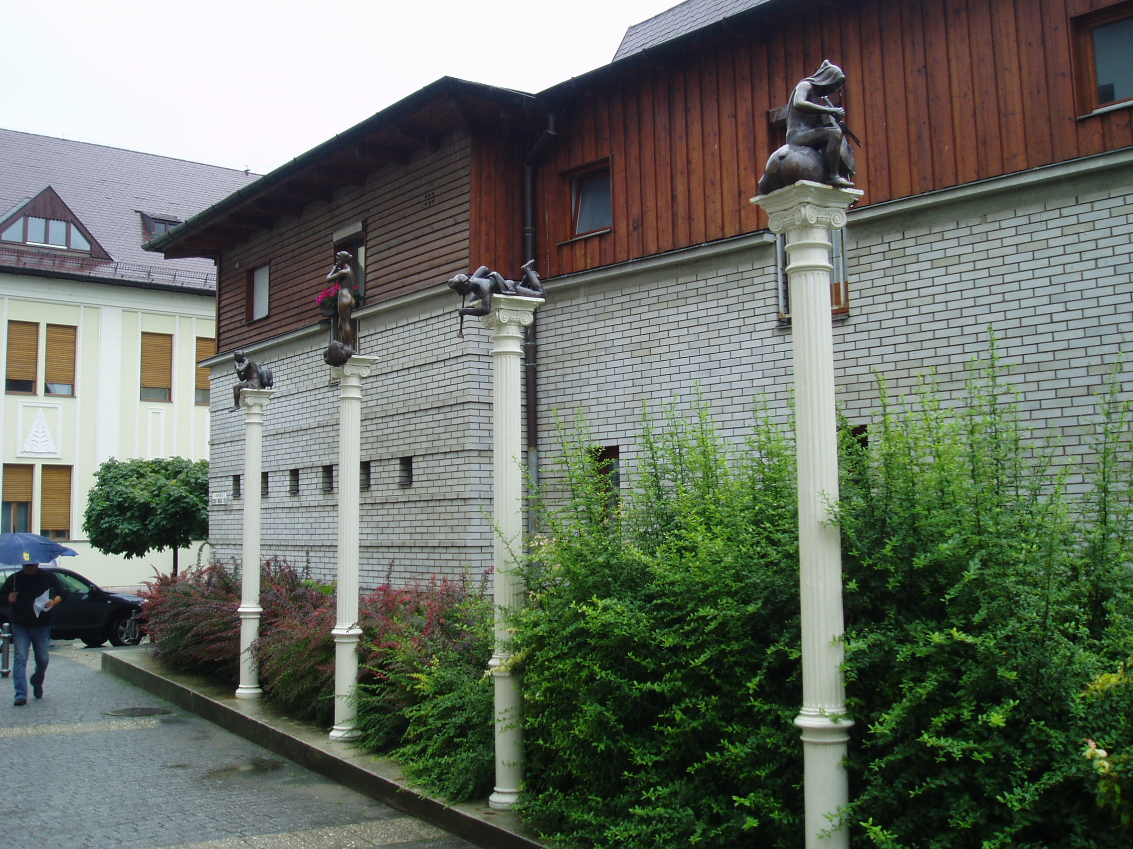 Nyilvános 815 | 2695 | Nyíregyháza, Szent Miklós tér: Szent Miklós szobra | A Szent Miklós tér Tóth Sándor Szent Miklós szobra mellett más látnivalókat is kínál. 2009 szeptemberében helyezték el Zagyva László négy, a négy évszakot muzsikálók alakjában megjelenítő szobrait a téren álló görög stílű oszlopokon. Felhaszn. irod.: www.szoborlap.hu A fénykép 2010 augusztus elején készült |