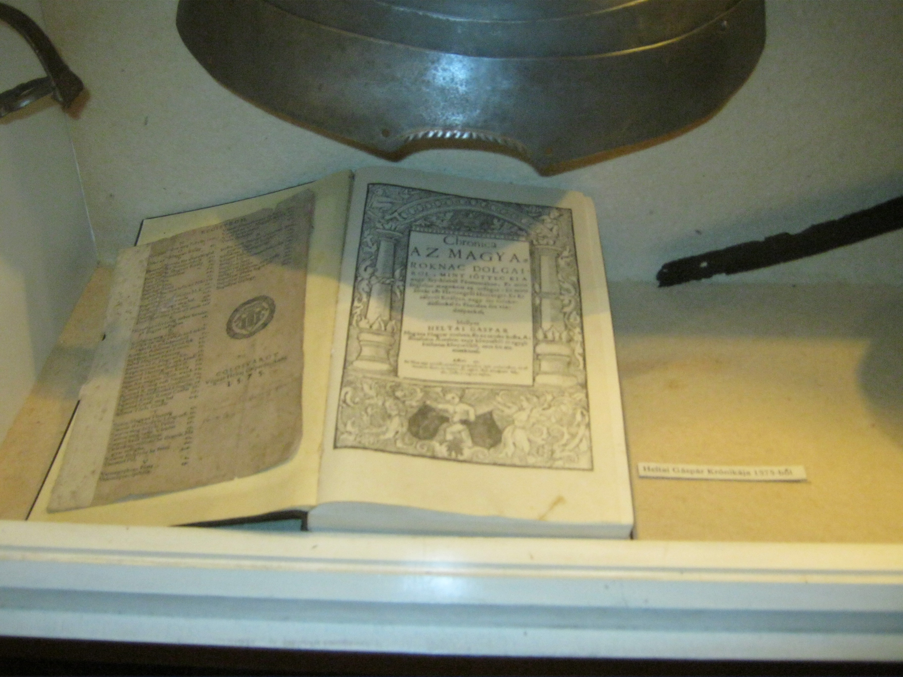 Nyilvános 756 | 1093 | Nyírbátor, Károlyi utca 21. Báthori István Múzeum | A minorita kolostor épültét 1959-ben kapta meg a múzeum. Első igazgatója, Szalontai Barnabás áldozatos munkája nyomán két év múlva már meg is nyílhatott benne az első kiállítás. A képen Heltai Gáspár (1490 k.-1574) híres könyve, a Krónika a magyaroknak dolgairól. Felh. irod.: Látnivalók Szabolcs-Szatmár-Bereg megyében. Miskolc, Well-PRess, 1999 www.nyirbim.hu |