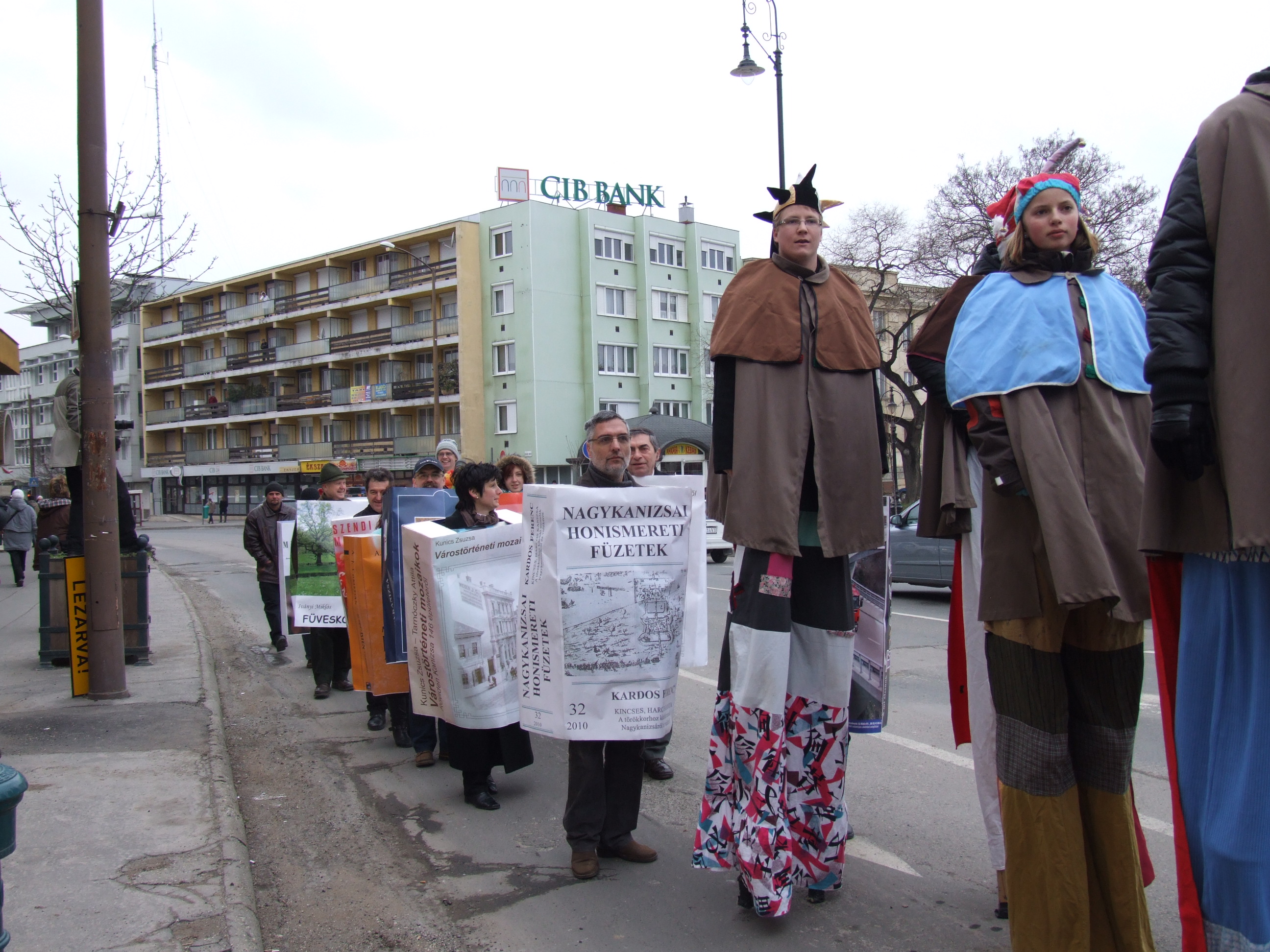 Nyilvános 806 | 1128 | 2013. február 9. A farsangi fánkfesztiválra készülve felhívásban kértük olvasóinkat, hogy öltsék magukra kedves könyvüket. Egy „könyvespolcnyi” jelentkező vette magára kedves olvasmányát, az ő vonulásukról készültek ezek a képek. A környezetükben néhol láthatók a Nagykanizsai Gólyalábasok, akik szintén a könyvtárhoz kötődnek. A „felvonuló kötetek” a könyvtár épületében még megtekinthetők. | |