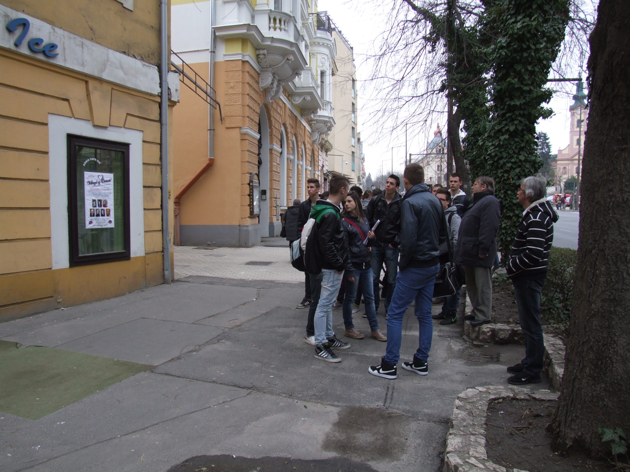 2014.03.05. Cserháti iskolások (10.c) a Korona szállónál 05.JPG