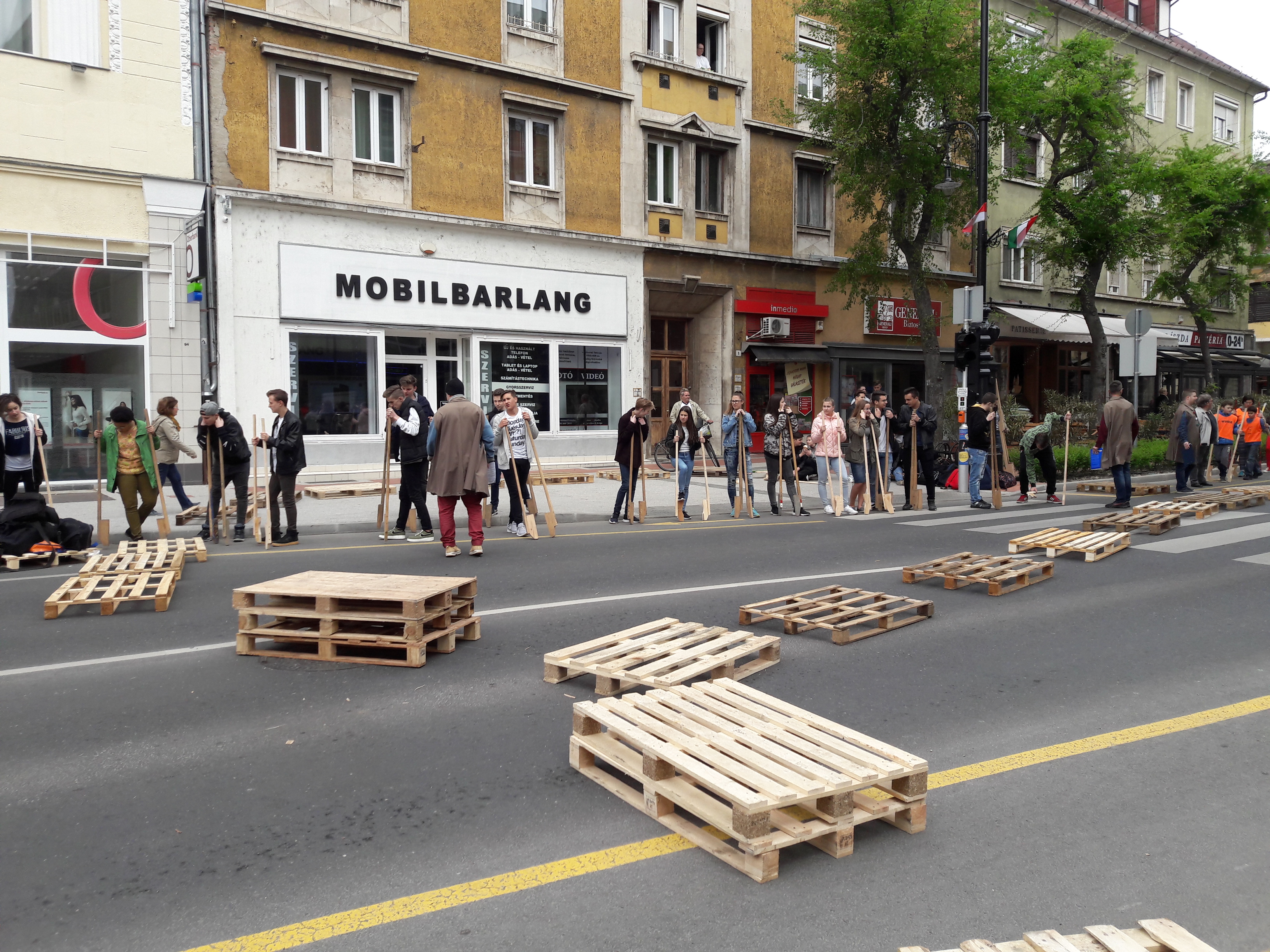 2017.04.27. Tömeges gólyalábra állás a Fő út - Ady u. kereszteződésében