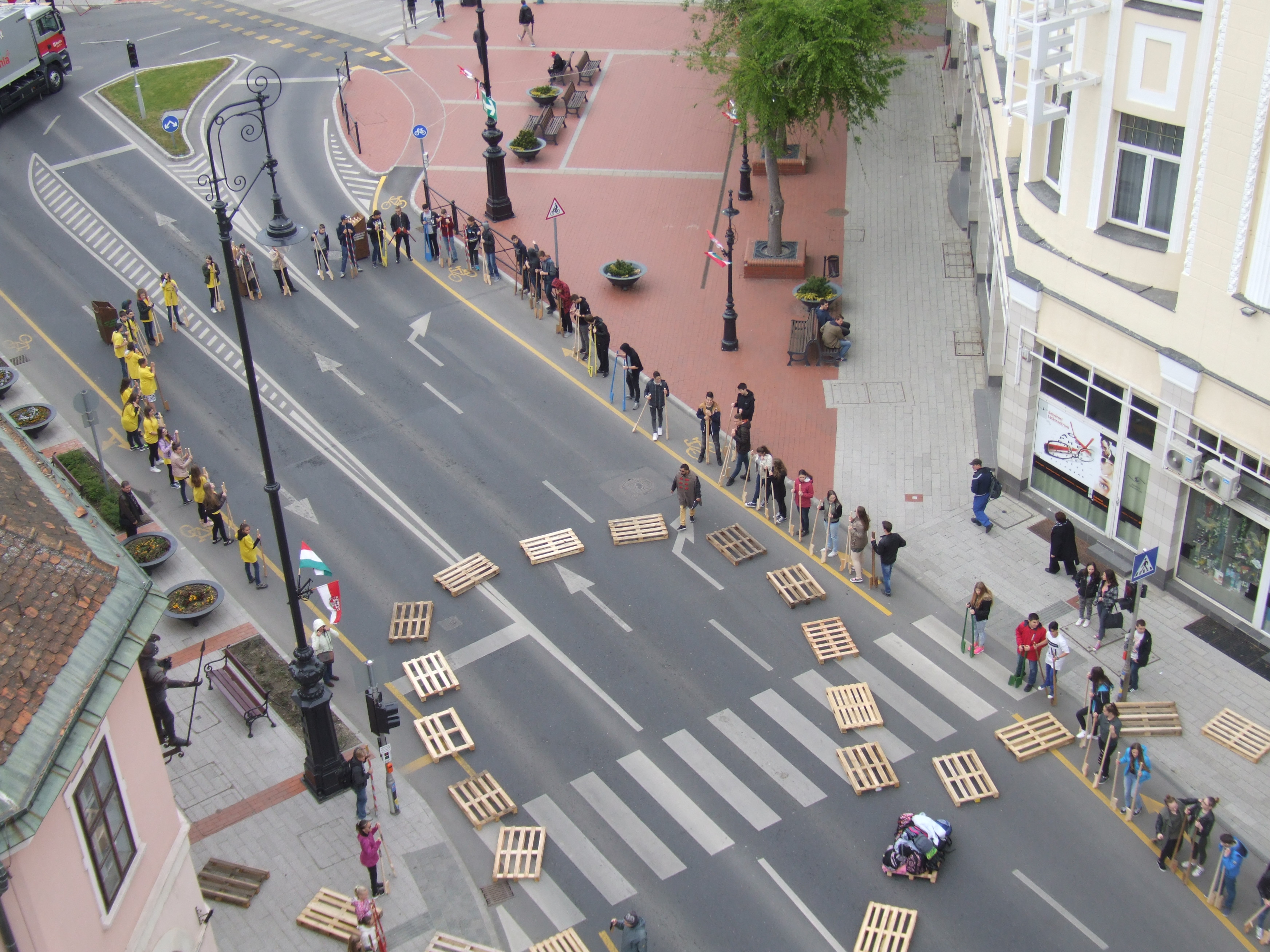 2017.04.27. Tömeges gólyalábra állás a Fő út - Ady u. kereszteződésében